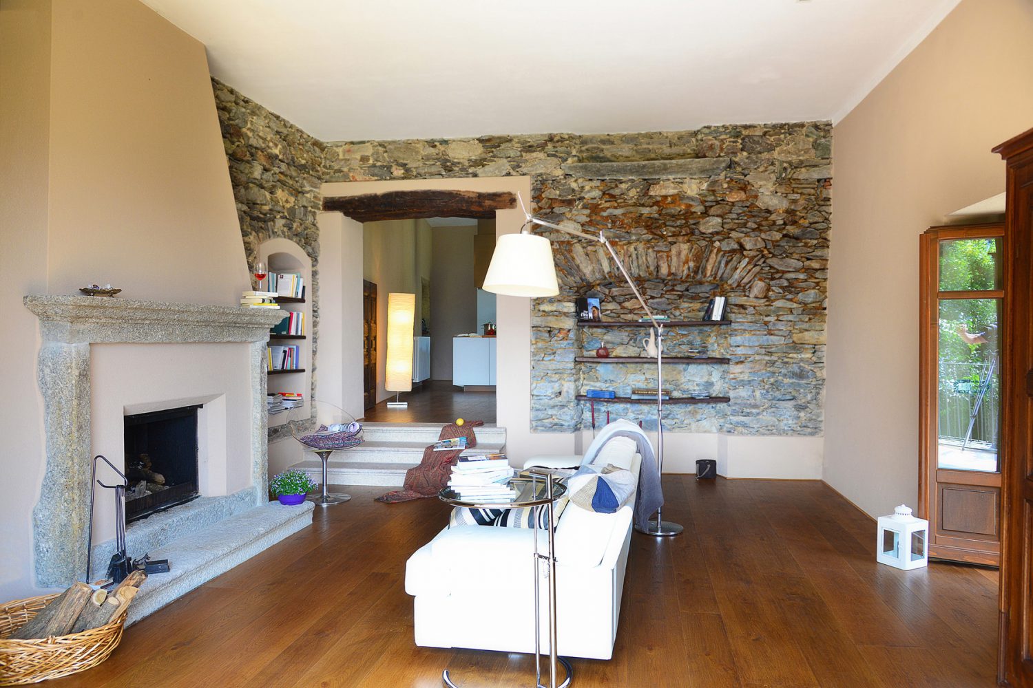 I progettisti rimuovono i pavimenti in ceramica, sostituiti da pavimenti in legno a listoni di rovere antichizzato ed i serramenti, realizzando i nuovi sempre in legno con la stessa forma e tipologia di quelli presenti nella zona del lago d’Orta