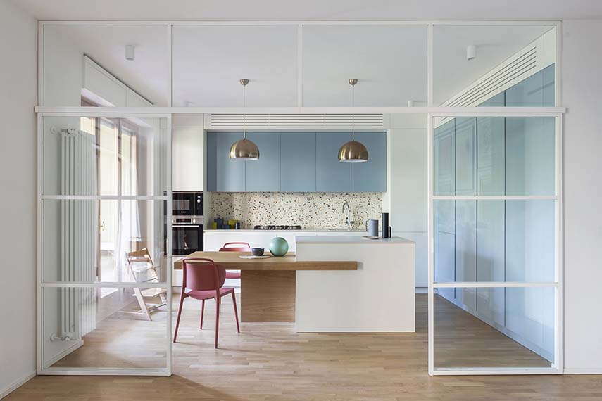 Già clienti dello studio NOMADE architettura e interior design per la precendente residenza, l’appartamento viale Abruzzi, i committenti chiamano il team guidato da Selina Bertola per realizzare Casa Lazit. La famiglia si è ingrandita e le esigenze dei suoi componenti sono cambiate e i progetti di interior design possono rifletterne la trasformazione e agevolarla. La palette neutra scelta per le pareti è energizzata da accenti di colore degli arredi e accessori: lo stile eclettico si afferma come il migliore per una casa che vuole poter mutare con gli abitanti, senza perdere la propria natura