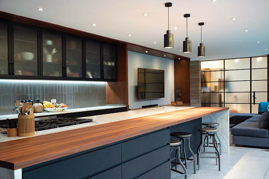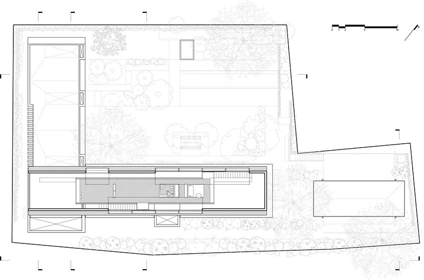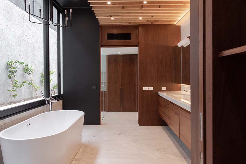 Casa L&J è uno dei progetti di architettura residenziale dello studio messicano di Alvaro Moragrega. Collocata nelle adiacenze di un campo da golf, la villa, con il suo volume principale in vetro e acciaio, il tetto a falde rivestite da tegole piatte nere, crea un filtro e una protezione per la tranquillità dei suoi abitanti. Al suo interno, la distribuzione degli spazi segue la forma allungata con gradi progressivi di intimità