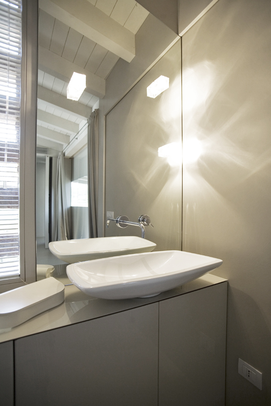 Il senso di calore e sobrietà che pervade tutti gli ambienti interni è il risultato di un’esasperata omogeneità cromatica ottenuta grazie all’accurata ricerca dei materiali