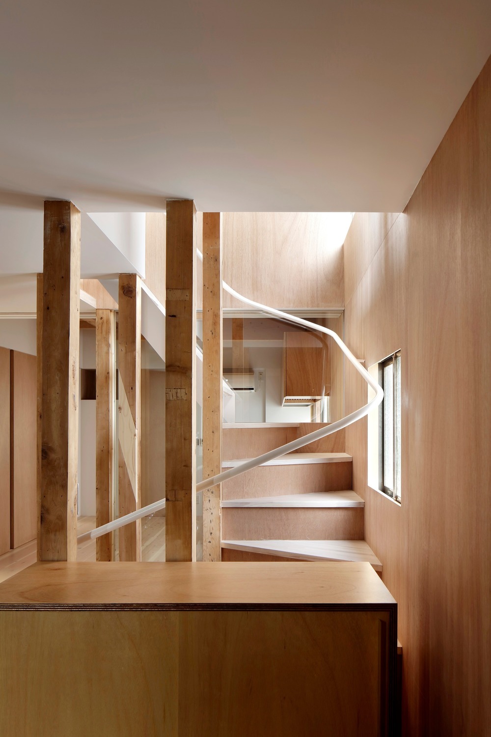 Sebbene le colonne fossero sufficienti secondo le partizioni esistenti, gli Architetti hanno scoperto che la casa esistente era strutturalmente squilibrata e mancava della resistenza strutturale necessaria. Hanno deciso di aggiungere rinforzi attraverso travi di sostegno e compensato strutturale, ottimizzando al contempo l'utilizzo dei componenti strutturali esistenti. a seguito del rinforzo strutturale sono stati rimossi venti pilastri, offrendo l'opportunità di creare nuovi spazi aperti