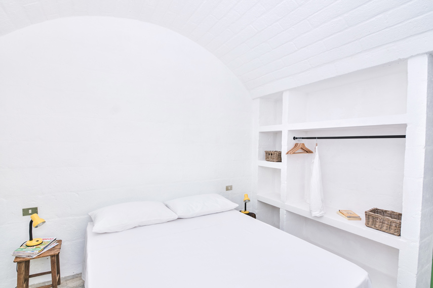 Gli arredi in muratura caratterizzano lo stile della realizzazione, dialogando armoniosamente con la pietra che compone murature e volte. Per crearli è stato scelto il sistema Gasbeton (blocchi Evolution e malta Incollarasa), che ha consentito di coniugare estetica, praticità e solidità. La particolare facilità di lavorazione e sagomatura dei blocchi ha permesso agli artigiani di modellare forme raffinate e personalizzate, dando vita a soluzioni belle e funzionali. Al tempo stesso, la robustezza del materiale e la sua naturale resistenza al fuoco offrono garanzie di sicurezza e durata. Di particolare pregio sono la cucina in muratura completata da sportelli in legno, la cucina esterna e gli armadi a giorno integrati con le murature divisorie di camere e bagni. Inoltre, il sistema Gasbeton, che permette di incollare e rasare i blocchi con un’unica malta, ha facilitato la successiva applicazione delle finiture scelte per ottenere la continuità materica che tanto contraddistingue l’abitazione.