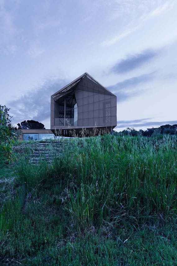 Tutelare il contesto ambientale e minimizzare l’impatto visivo dalla via Francigena sono i focus che, insieme ad una concezione contemporanea dell’abitare, guidano il progetto di LDA.iMdA architetti associati per la Casa Sotto la Nuvola. Orientata su un asse nord-sud perpendicolare al crinale della collina, l’abitazione si immerge nel paesaggio grazie ai suoi volumi che si aprono in “cannocchiali ottici” ad inghiottirne la luce e la bellezza