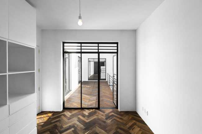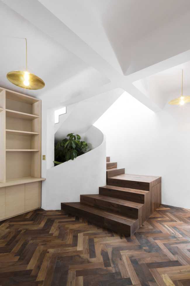 Una casa a schiera del 1930, all'interno di un cortile nel centro della metropoli, diventa l’inedita casa di famiglia dai rigogliosi giardini pensili e dai generosi spazi abitativi illuminati da “fessure” che irrompono la precedente compattezza del volume