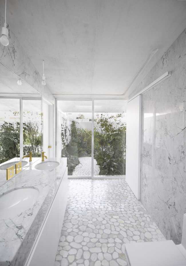 Zeller & Moye progetta per Casa Verne nuovi patii e lucernari che tagliano l’unità della struttura per massimizzare la luce nei livelli inferiori, in origine scarsamente illuminati. L’abitazione viene dotata di un piano in più e il tetto diventa un grande aggetto in calcestruzzo bianco che protegge dalla luce troppo intensa il piano inferiore completamente vetrato