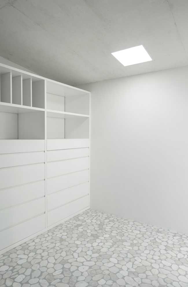 I tre livelli dell’abitazione sono contraddistinti da un carattere volutamente ben definito: al piano terra la zona più funzionale di servizio; al livello superiore gli spazi dedicati alla vita familiare; al livello del giardino sul tetto, gli spazi privati dove godere ognuno della sua privacy