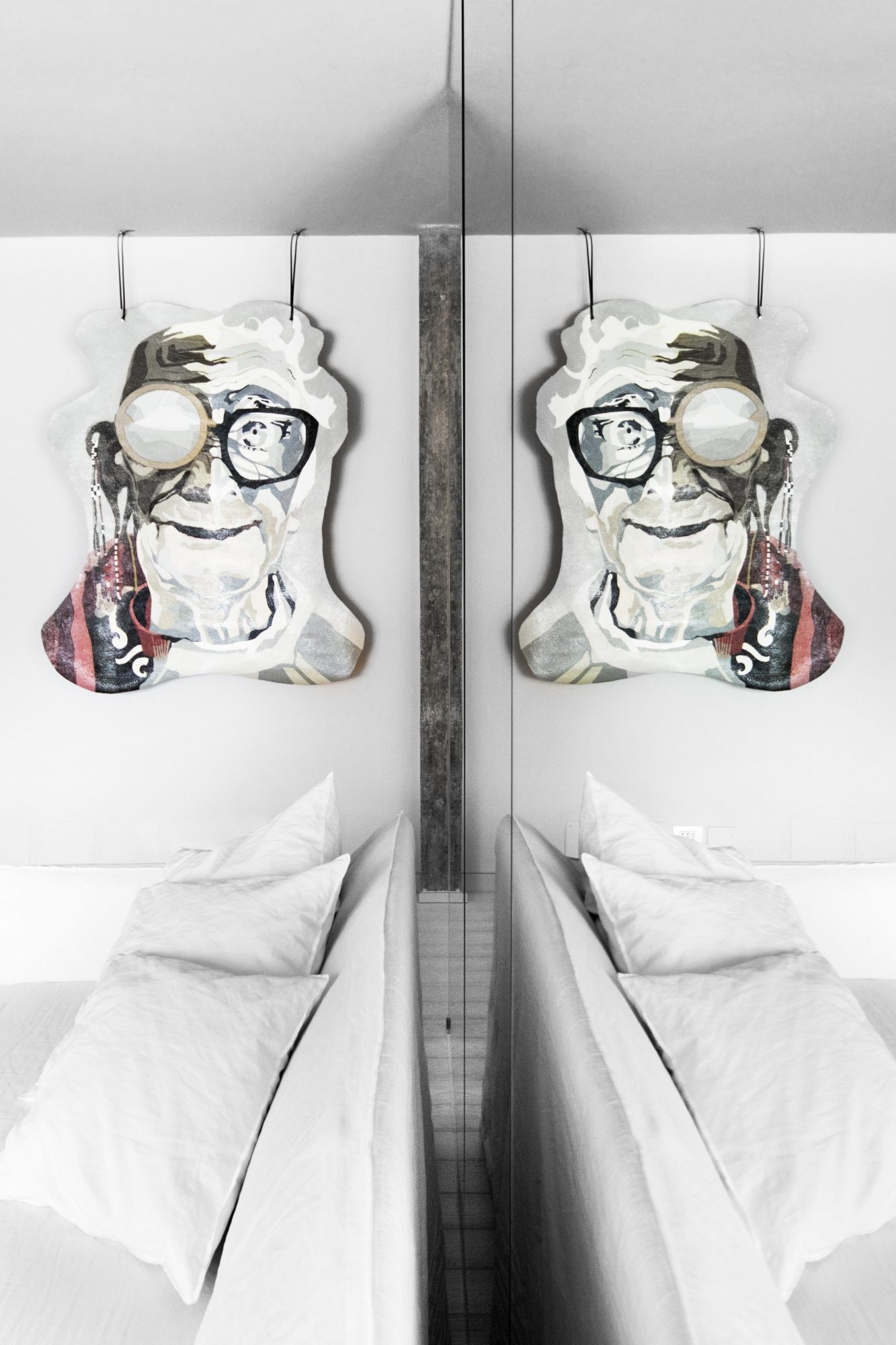 I materiali utilizzati sono legno, vetro e specchio, utilizzati a ripetizione in tutti gli ambienti dell'abitazione: questo contribuisce a creare un senso di unione tra gli spazi che risultano così interconnessi. Le superfici in legno creano un piacevole contrasto sullo sfondo monocromatico conferendo un tocco caldo e naturale
