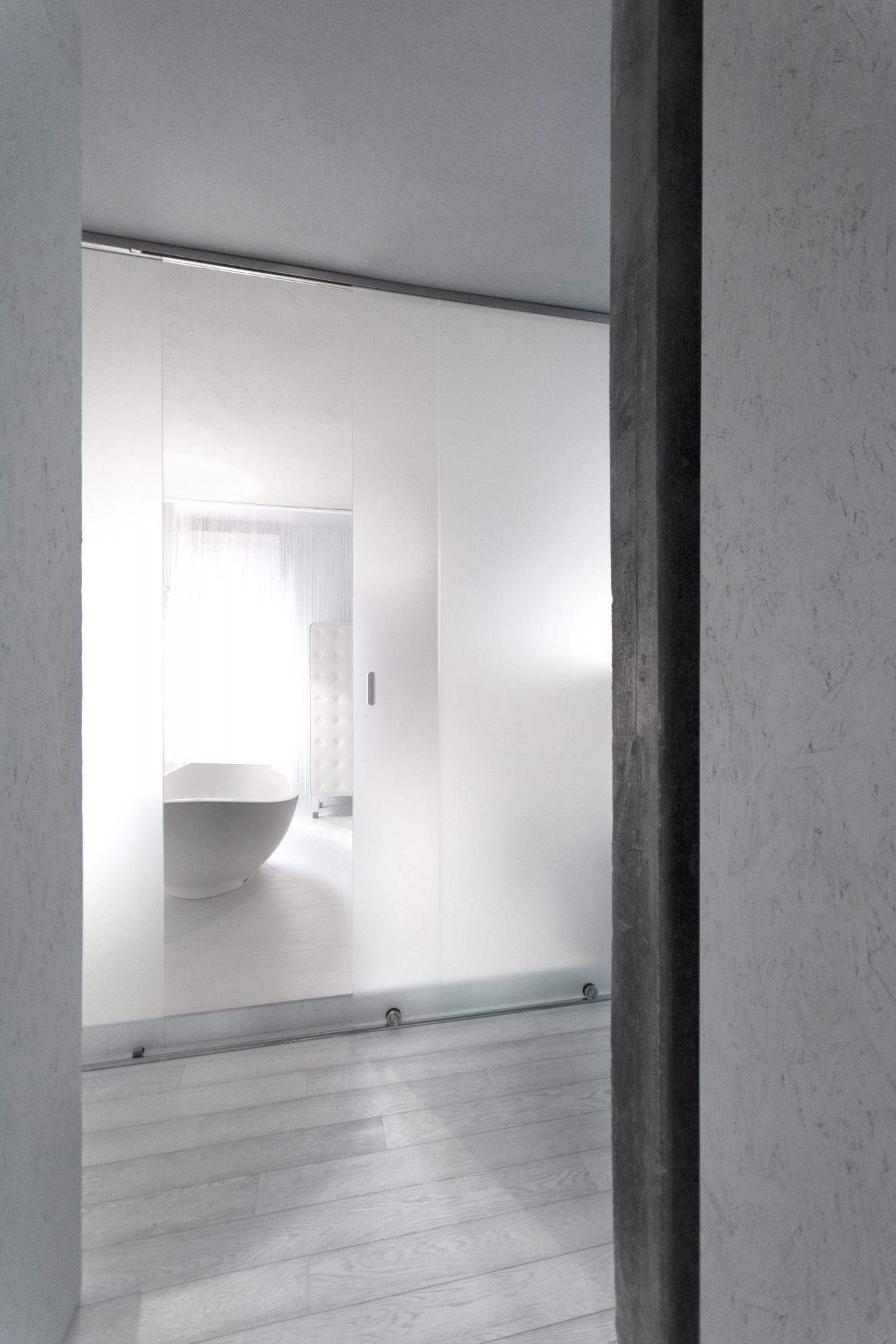 L'abitazione di sviluppa su una superficie di circa 100 mq su un unico piano dove l'elemento bagno occupa una posizione centrale nella disposizione architettonica e viene vissuto come un vero e proprio salotto.