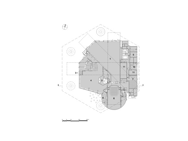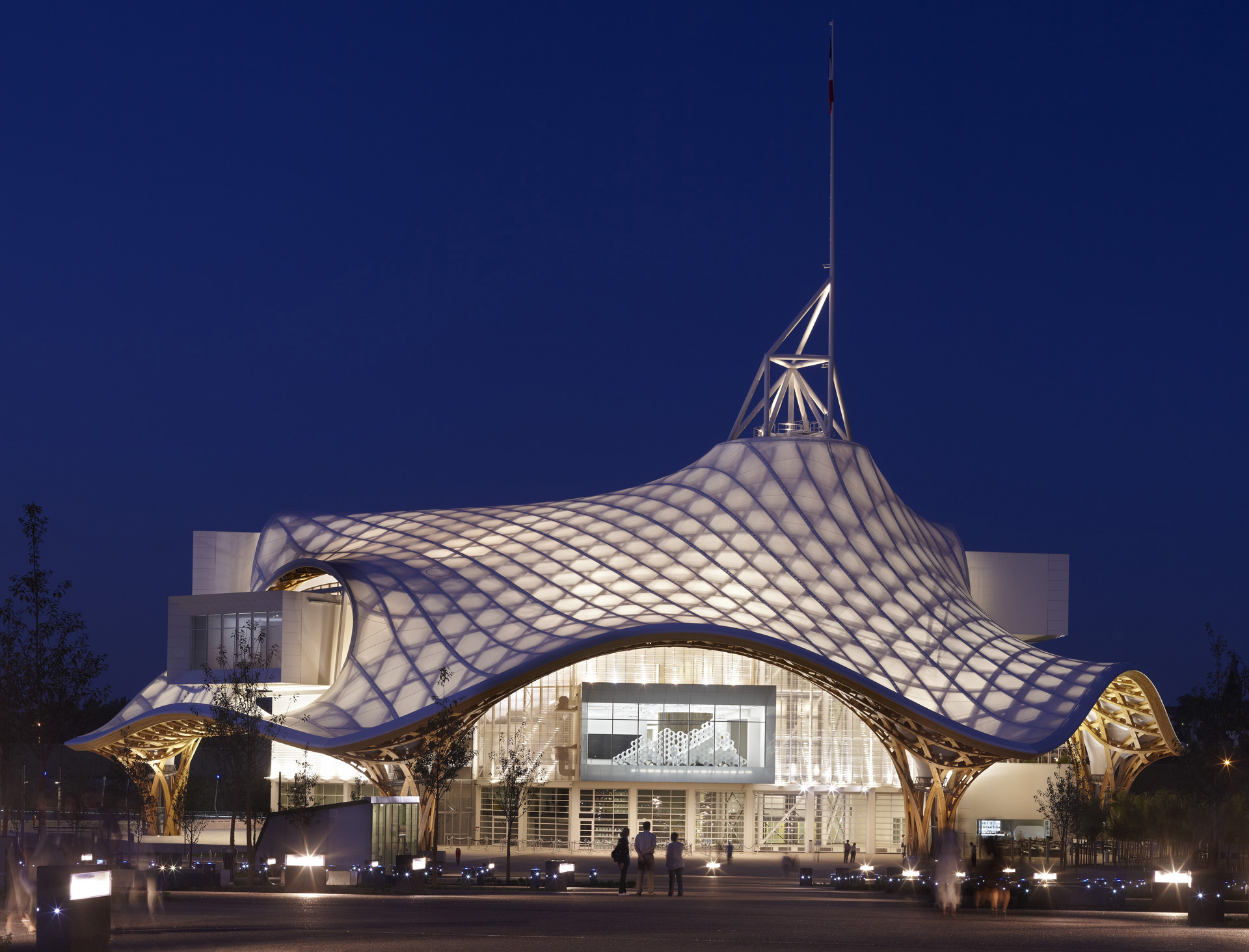 Un altro volume circolare e contiene gli spazi per la presentazione di spettacoli o performance artistiche con un ristorante ai piani superiori, e un volume di forma quadrata che contiene un auditorium, uffici e altri spazi retrostanti. La struttura del tetto in legno con forma di un esagono passa sopra tutti i volumi separati per unificarli. Per i francesi, l'esagono è un simbolo del loro paese, in quanto è simile alla forma geografica della Francia. Con la creazione di un modello di esagoni e triangoli solo quattro elementi in legno si intersecano. Le intersezioni non utilizzano giunti metallici, ogni elemento si sovrappone all'altro. Questa idea è nata dalla trama di un cappello di tessuto tradizionale cinese