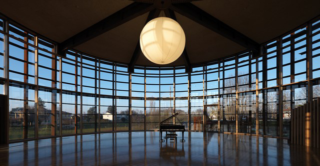 Il Centro Sport e Cultura rappresenta il simbolo più importante della rinascita della vita sociale di Bondeno: il nuovo edificio sorge a est rispetto al centro della cittadina, in un’area strategica dal punto di vista urbanistico perché già caratterizzata dalla presenza di un’importate struttura sportiva. Il progetto prevede la compresenza di volumi cilindrici accessibili e collegati fra loro mediante percorsi in quota. Le forme architettoniche sono ispirate al paesaggio agreste e alle attività tipiche del territorio, richiamando le balle circolari di fieno che punteggiano i campi dopo la mietitura. Sostenuto da strutture in calcestruzzo, acciaio e legno che creano suggestivi ambienti circolari aperti verso il paesaggio, il Centro Sport e Cultura ospiterà diverse funzioni: palestra, teatro, cinema, sala conferenze. Un impianto fotovoltaico contribuirà alla produzione di energia da fonte solare rinnovabile