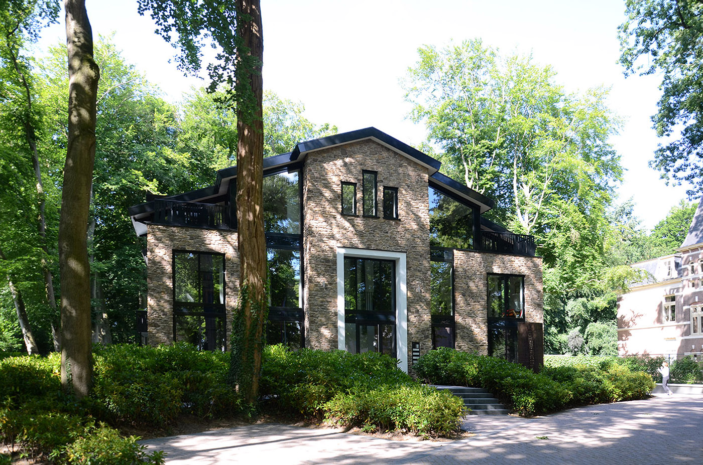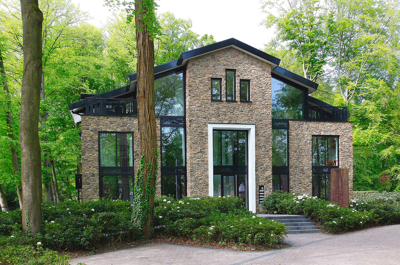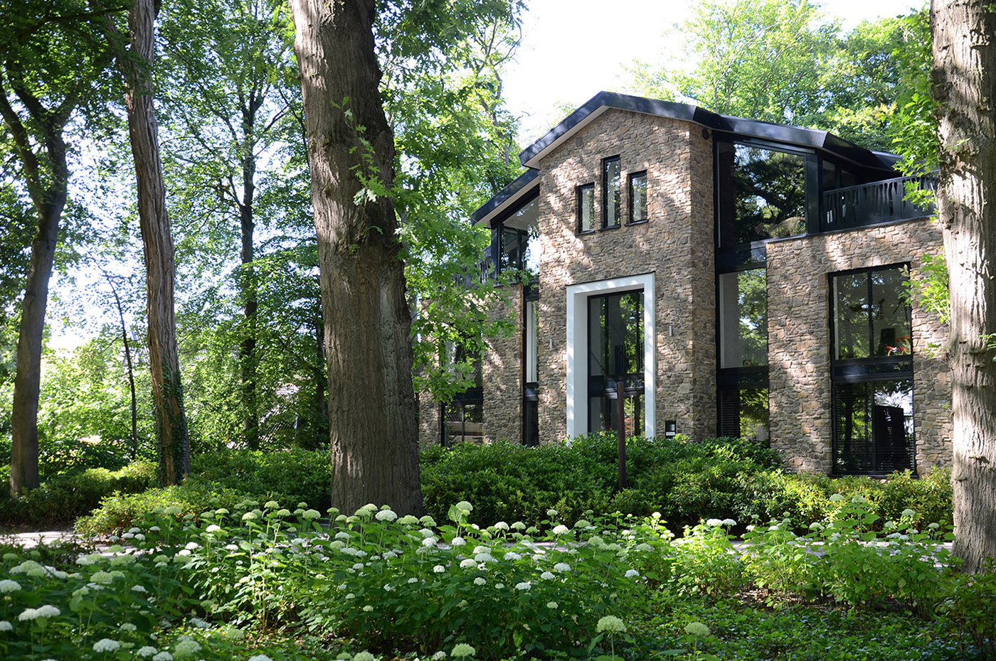I’M Architecten di Deventer, responsabile della progettazione, si è ispirato all’architettura degli chalet svizzeri in una versione moderna e con l’aspetto signorile di una grande villa. L’articolazione verticale dell’edificio ben si integra con i palazzi esistenti lungo il viale Loolaan. L’acciaio nero degli infissi e delle particolari ringhiere conferisce all’edificio un aspetto contemporaneo. Le facciate di Chalet Loolaan invece, isolate con un sistema a cappotto, sono rivestite in pietra ricostruita ecologica dell’azienda italiana Geopietra®, un prodotto innovativo e sostenibile, di alta qualità tecnica, progettato per le nuove esigenze dell’architettura moderna e in perfetta armonia con la natura da cui trae profonda ispirazione, rendendo l’intervento architettonico prezioso e armonico con il contesto estetico
