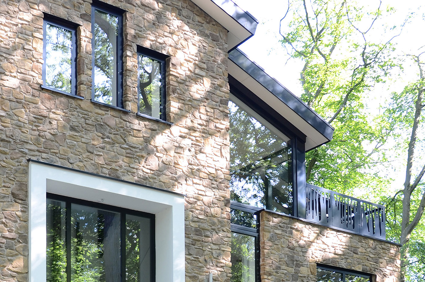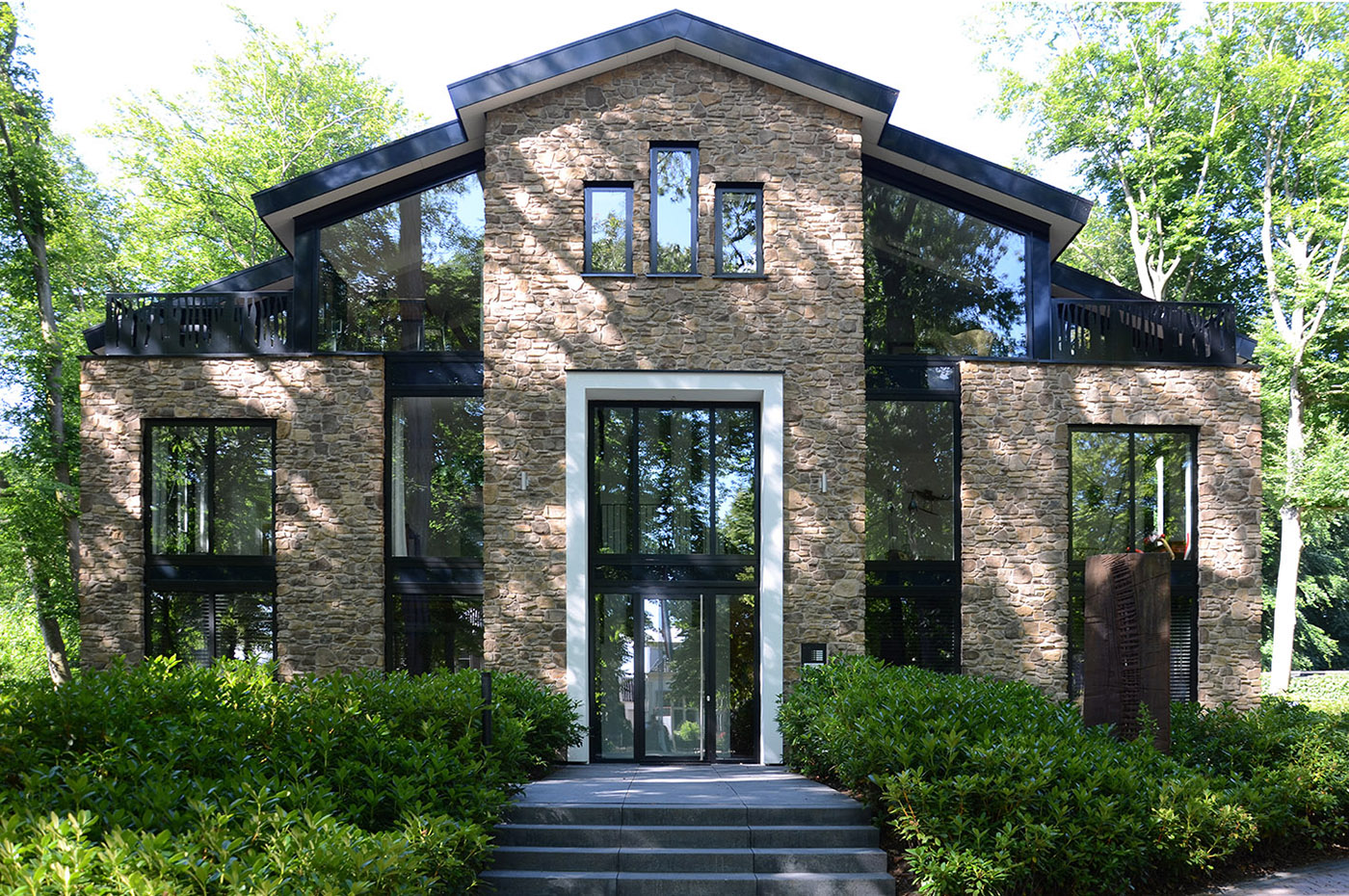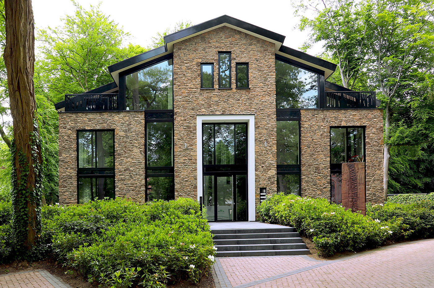 I’M Architecten di Deventer, responsabile della progettazione, si è ispirato all’architettura degli chalet svizzeri in una versione moderna e con l’aspetto signorile di una grande villa. L’articolazione verticale dell’edificio ben si integra con i palazzi esistenti lungo il viale Loolaan. L’acciaio nero degli infissi e delle particolari ringhiere conferisce all’edificio un aspetto contemporaneo. Le facciate di Chalet Loolaan invece, isolate con un sistema a cappotto, sono rivestite in pietra ricostruita ecologica dell’azienda italiana Geopietra®, un prodotto innovativo e sostenibile, di alta qualità tecnica, progettato per le nuove esigenze dell’architettura moderna e in perfetta armonia con la natura da cui trae profonda ispirazione, rendendo l’intervento architettonico prezioso e armonico con il contesto estetico