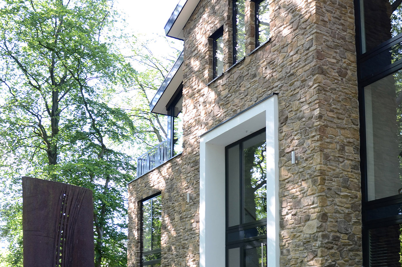 I’M Architecten sceglie la pietra ricostruita di murogeopietra® per il rivestimento delle facciate. Un argomento importante per l’architetto Martin Kleine Schaars, che preferisce materiali ecologici che carichino il meno possibile la nostra impronta sulla Terra. Le facciate realizzate in murogeopietra® CAMUNA sono posate su isolamento termico in una pregevole combinazione con le alte vetrate che arrivano fino al tetto
