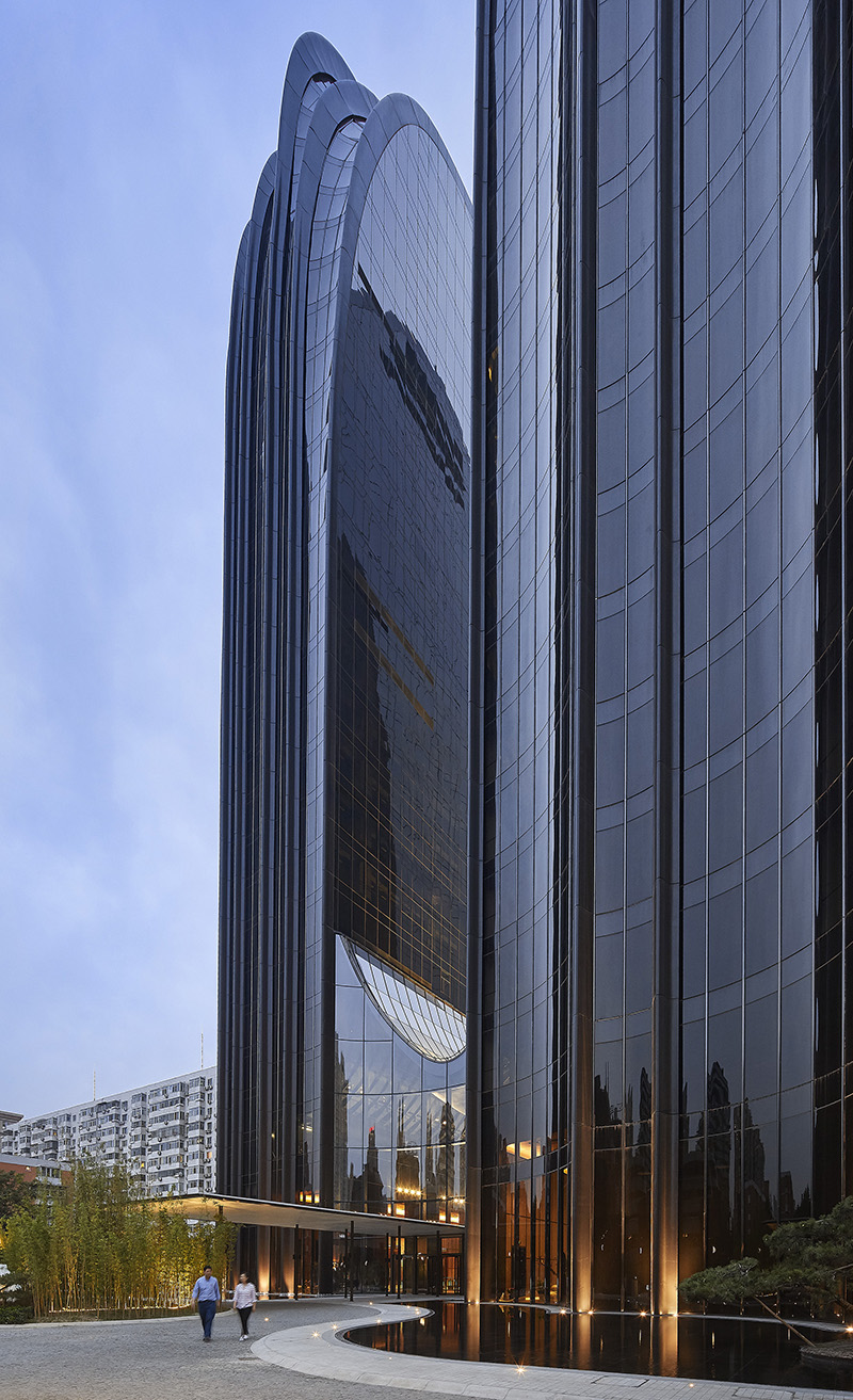 MAD Architects completa "Chaoyang Park Plaza", che comprende il complesso di appartamenti Armani, posizionato all'estremità dell più grande parco di Pechino. A a differenza dei moderni palazzi crea un'espansione della natura seguendo l’approccio classico all'architettura cinese