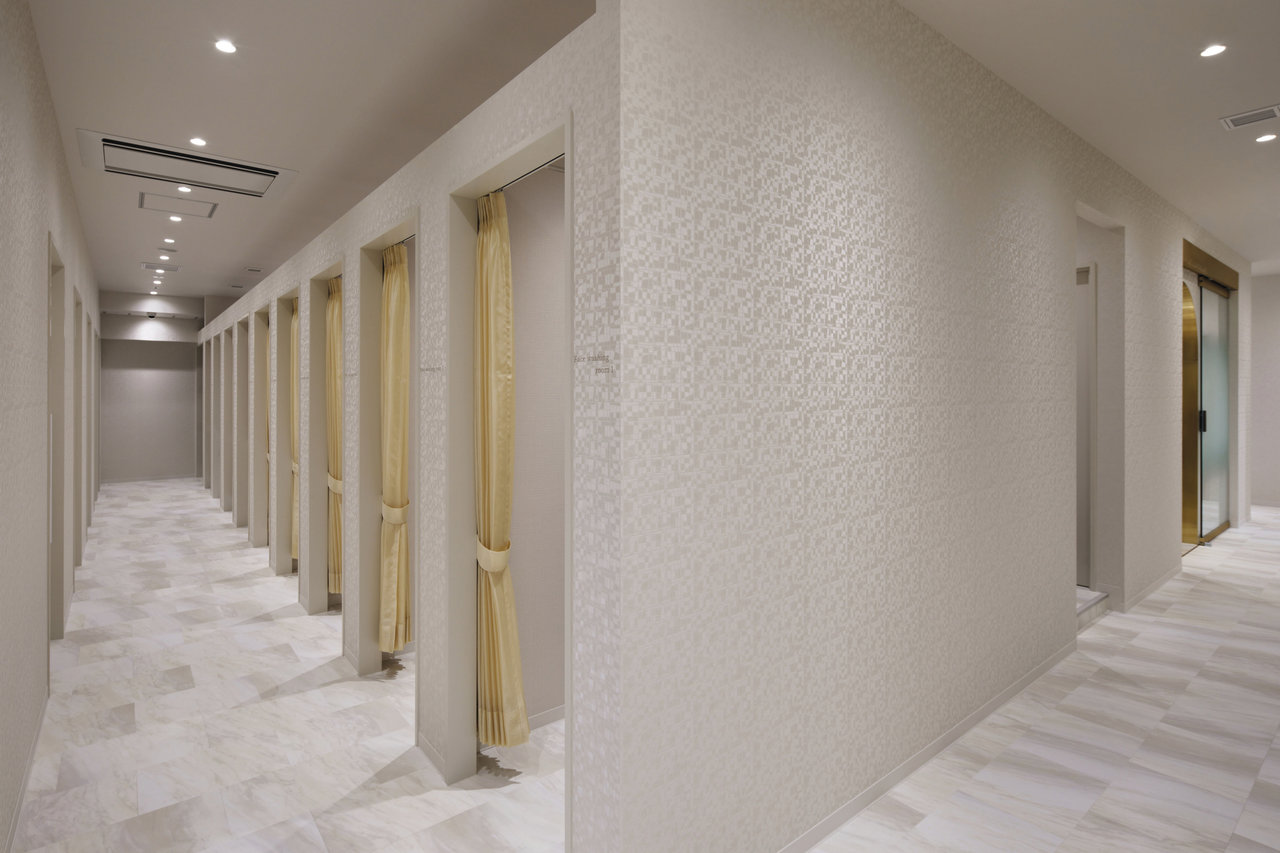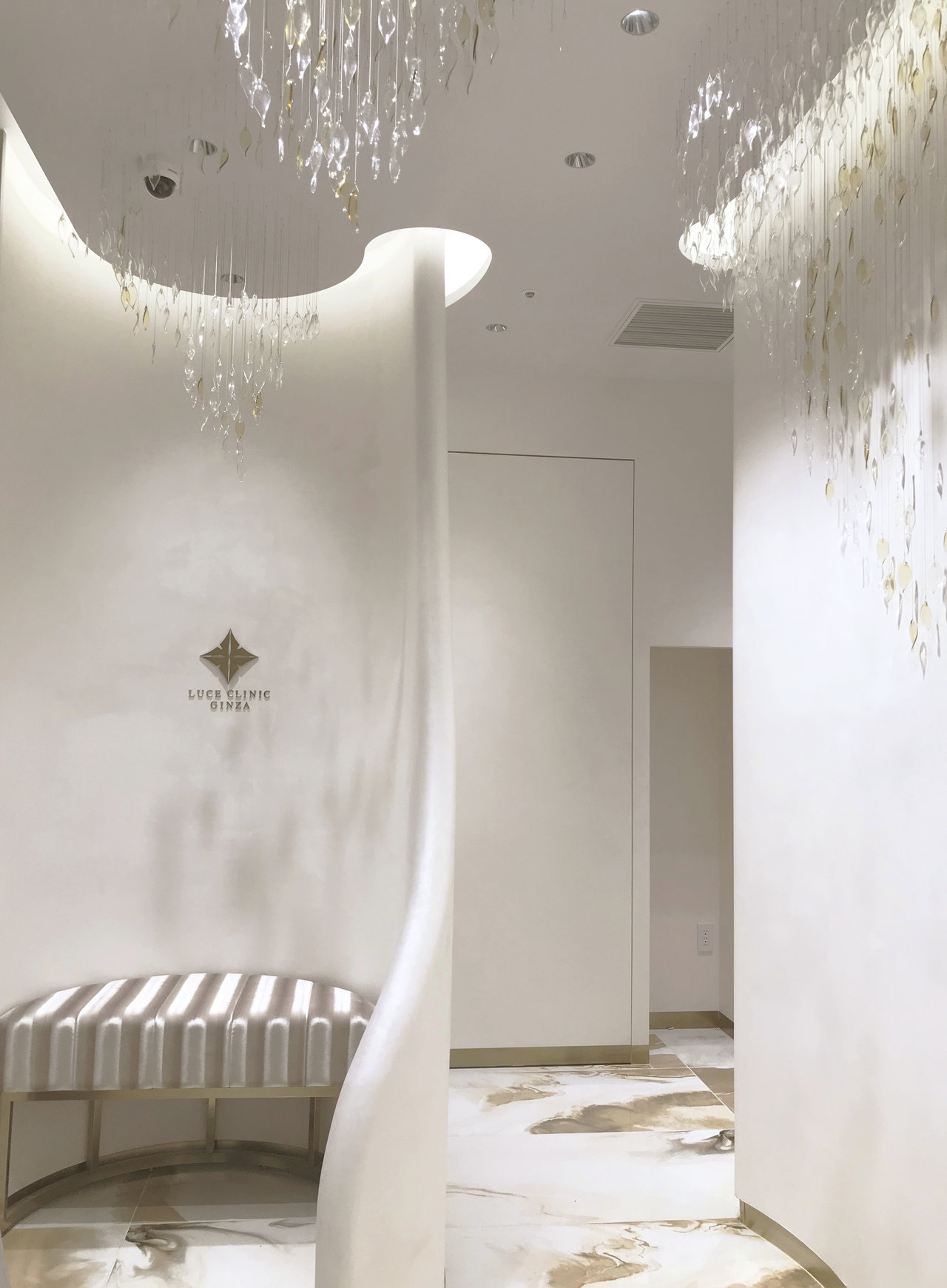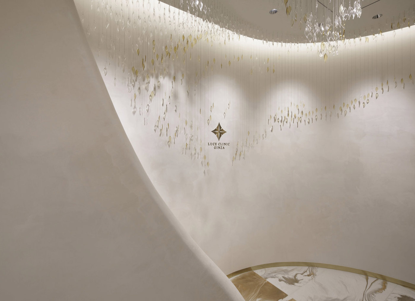 Clinica estetica a Ginza.Tratti sinuosi, luci e nuance organiche per rigenerarasi e coltivare la bellezza