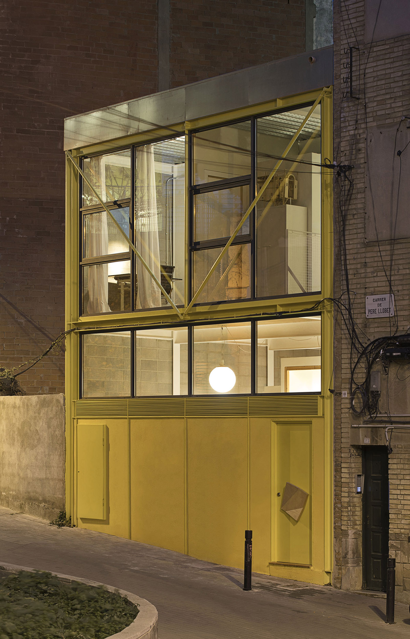 Situata in centro a Barcellona, questa casa è composta da un grande plinto che interagisce con il giardino e la terra, sulla quale fa poggiare una leggera struttura metallica aperta al paesaggio e alla luce solare.