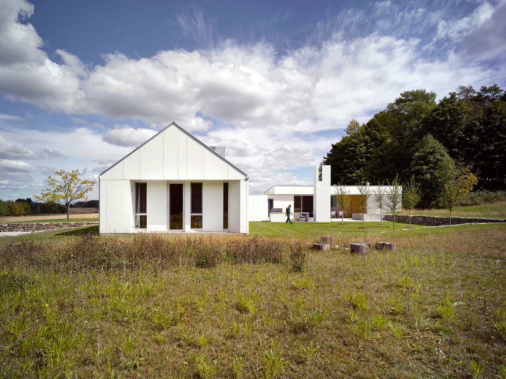 Situato sulla scarpata del Niagara, l'ubicazione dell'edificio stabilisce in modo strumentale l'orientamento. La casa si trova al centro delle caratteristiche costitutive della terra: foreste a ovest, una collina a sud e 100 acri di campi a nord e ad est. Arretrato dalla strada, è circondato da un boschetto di alberi per fornire frangivento e un senso di recinzione. All'avvicinarsi alla corsia aziendale esistente, l'esterno bianco aiuta a registrare le stagioni, distinte tra i campi verdi dell'estate, e fondendosi in un paesaggio invernale di luci e neve calante