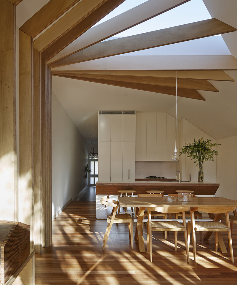 Un'abitazione e una terrazza al piano terra, al centro della città di Melbourn, in Australia, è la protagonista del progetto, in cui l'elemento di maggior rilievo è senza dubbio il legno, utilizzato soprattutto a scopo decorativo