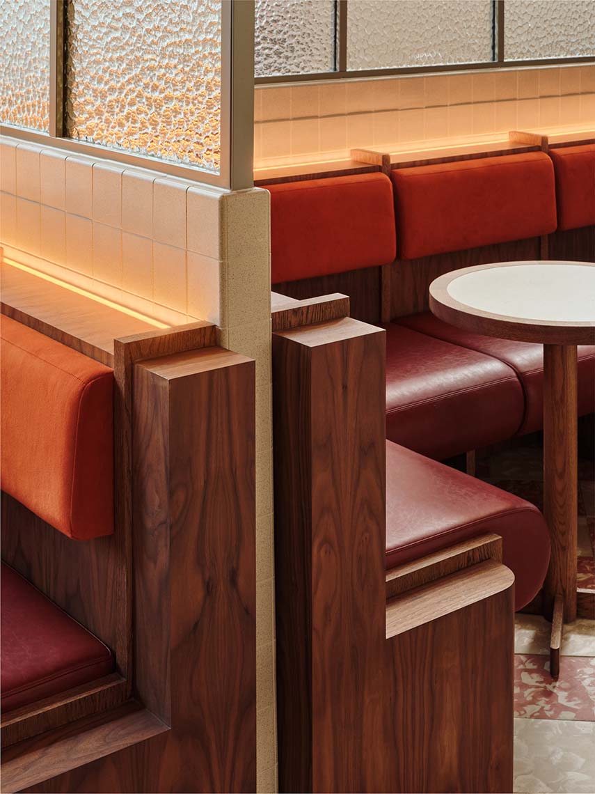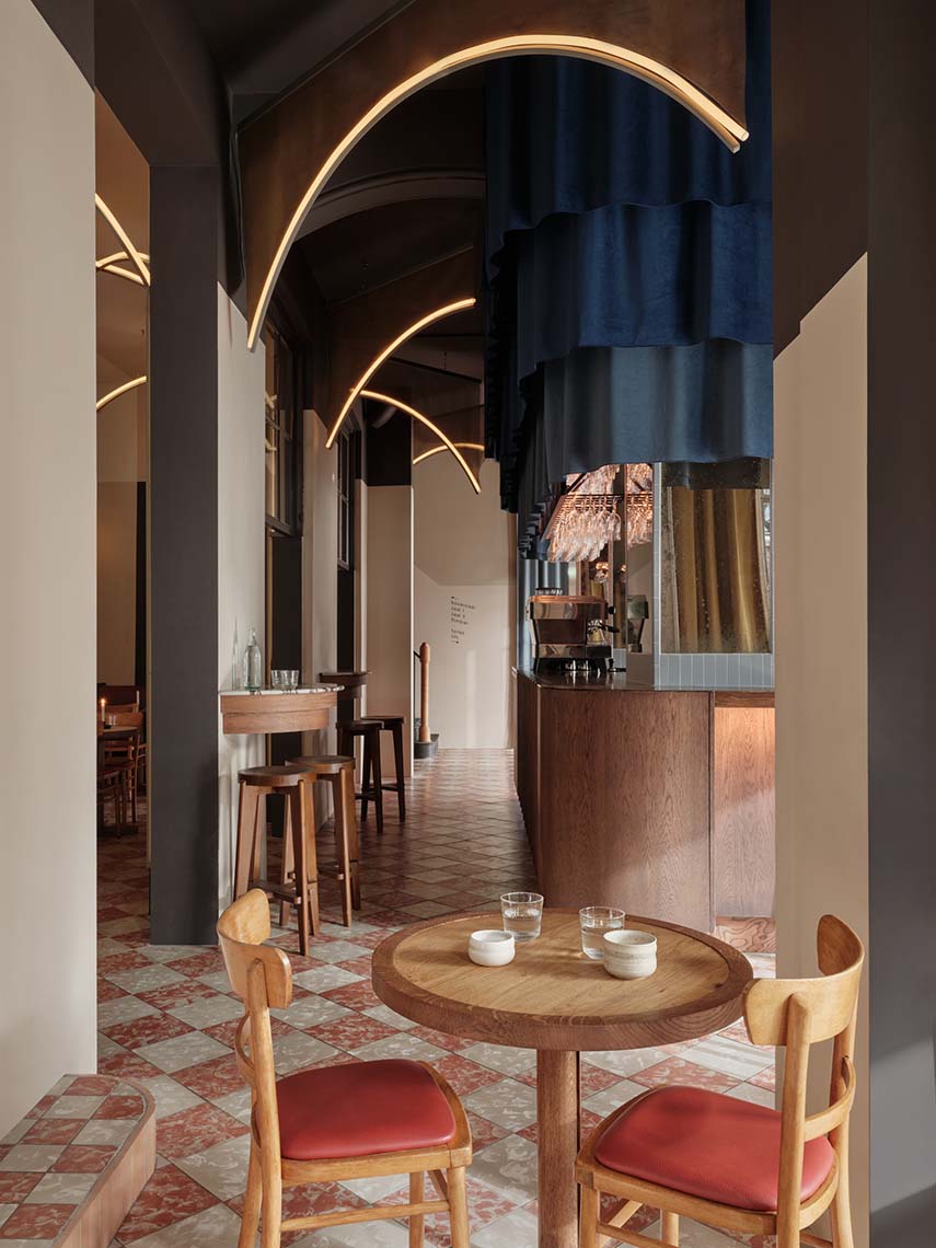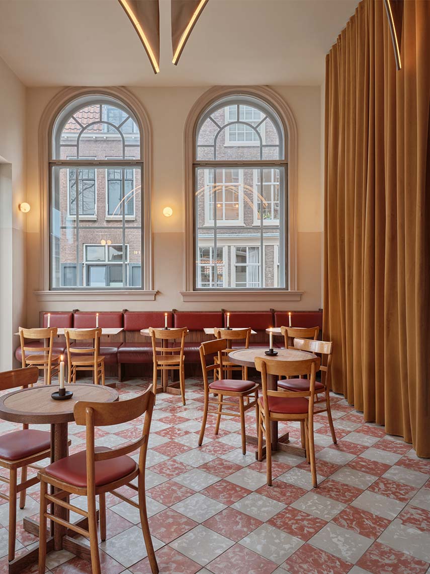 L'edificio che ospita De Witt ha una storia affascinante, avendo servito come convento, scuola e laboratorio prima di diventare un cinema. Studio Modijefsky ha saputo integrare questi strati storici nel design, creando un linguaggio visivo senza tempo. I chiostri, le cuffie e i vestiti delle suore sono richiamati negli elementi architettonici e decorativi. Le piastrelle, le finestre delle aule e le bacheche evocano l'epoca scolastica, mentre i set di chimica e gli schermi protettivi ricordano il periodo in cui l'edificio era un laboratorio.