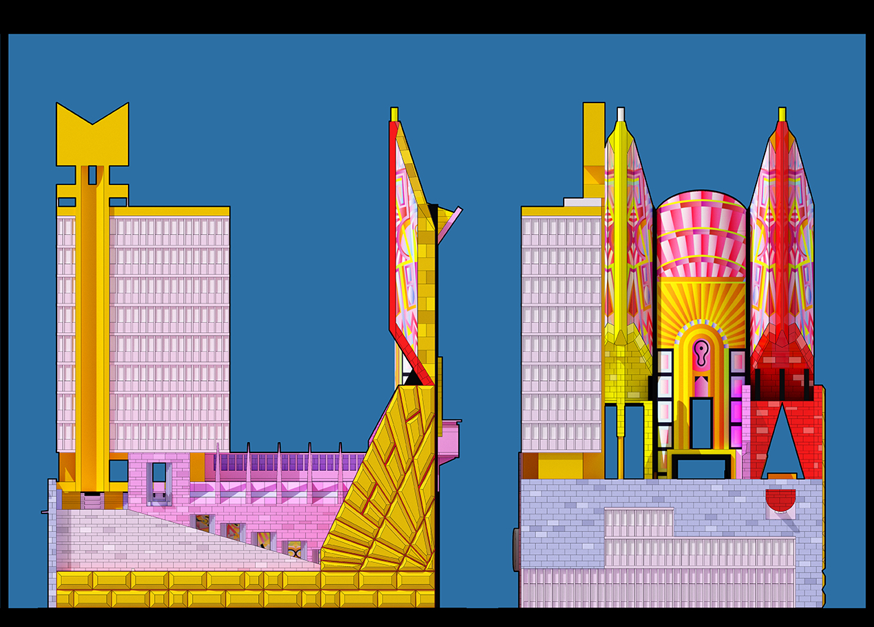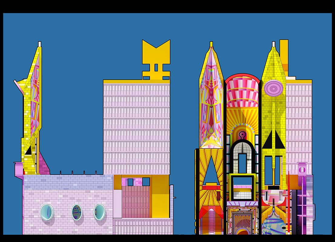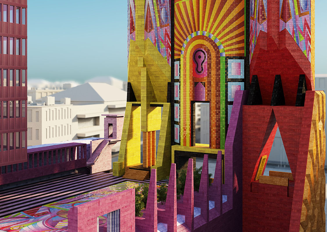 L’artista Adam Nathaniel Furman, attraverso quest’opera concettuale, immagine un municipio ideale in cui ogni elemento è articolato come un'espressione architettonica distinta, generando una tensione tra l'intero e le sue parti, esprimendo il dialogo nella democrazia tra il bisogno di consenso e valori condivisi