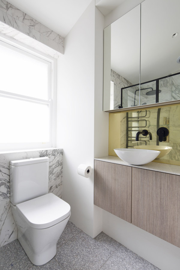 La casa, spesso ospite di incontri culturali, presenta l'illuminazione a binario disposta simmetricamente negli spazi principali, superfici in ottone, pareti divisorie vetrate con cornice in acciaio. In questo modo lo spazio appare semi-pubblico. Alla composizione rigida si contrappongono opere d'arte e mobili eclettici, distribuiti per tutta l'abitazione