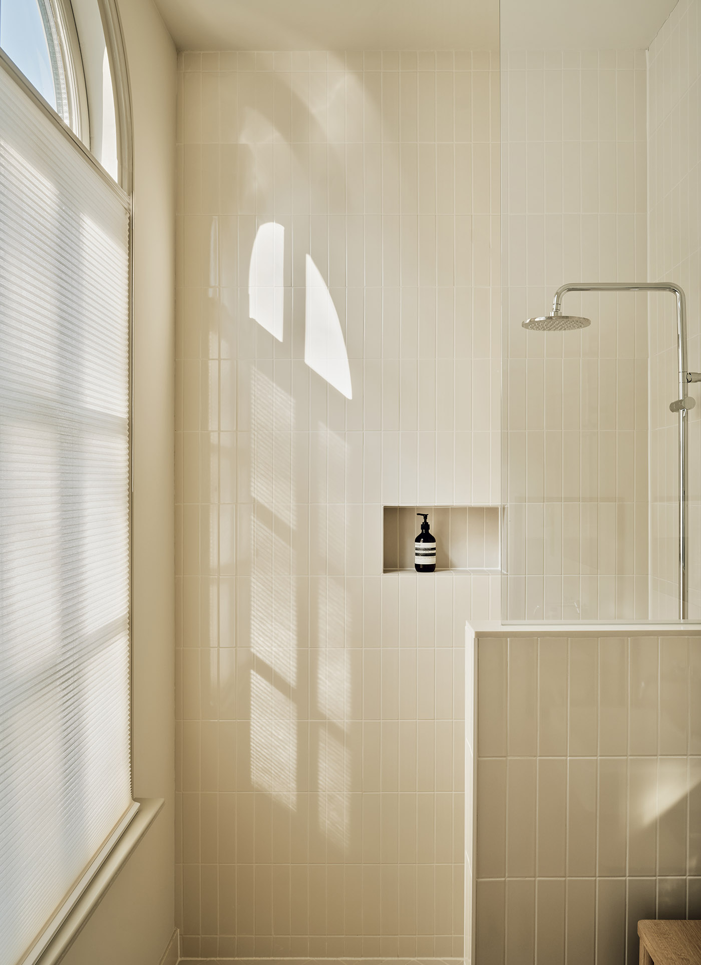 Il soggiorno è lo spazio più sontuoso della casa: la luce entra attraverso alte finestre ad arco che danno al soffitto curvo e alto, con decorazioni art deco, un'atmosfera spaziosa e accogliente. Sia il soffitto che le pareti sono stati dipinti in tre tonalità di bianco per esaltare gli elementi architettonici della stanza