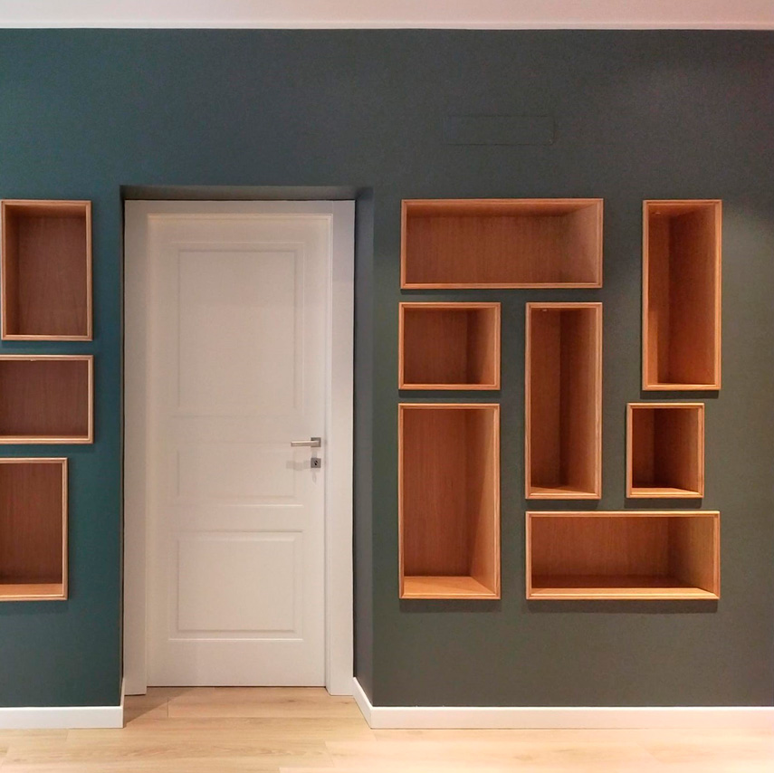 L’ingresso, ripensato come punto di raccordo, ora si apre verso la zona giorno senza svelarla del tutto, creando una percezione più ampia e accogliente. Il vecchio corridoio viene totalmente inglobato da studiolo, bagno principale e dispensa, recuperando metri quadrati preziosi. Questo intervento riflette l’approccio tipico dei progetti architettonici di interior design, in cui funzionalità e atmosfera dialogano per creare spazi coerenti e contemporanei.