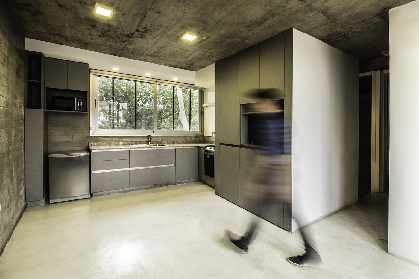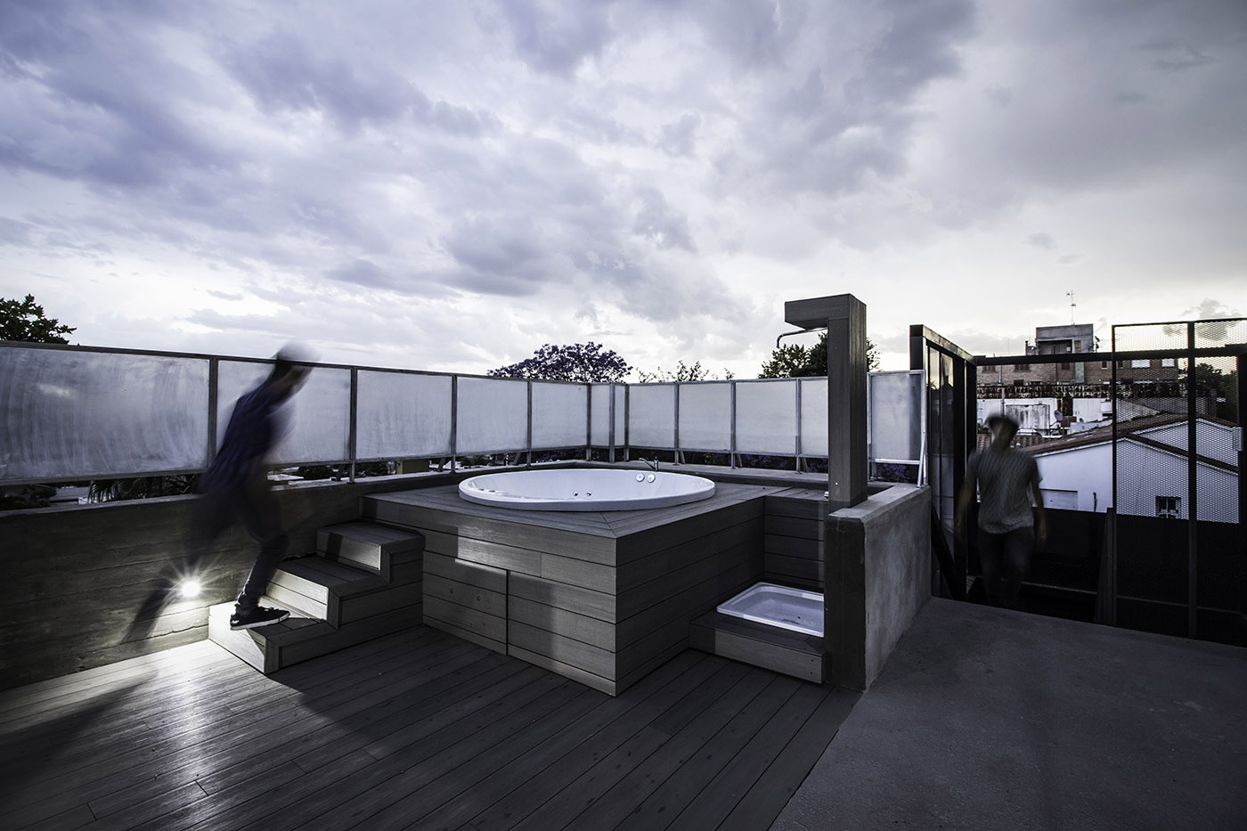 All'ultimo livello, si sviluppa una terrazza comune, con churrasquera, jacuzzi e angoli per l'incontro sociale e la contemplazione del panorama urbano. I materiali con cui ONA decide di lavorare, sia per la struttura che per il rivestimento esterno, sono cemento armato a vista e vetro. Per le finiture interne vengono utilizzate pareti in muratura e pareti leggere dipinte di bianco