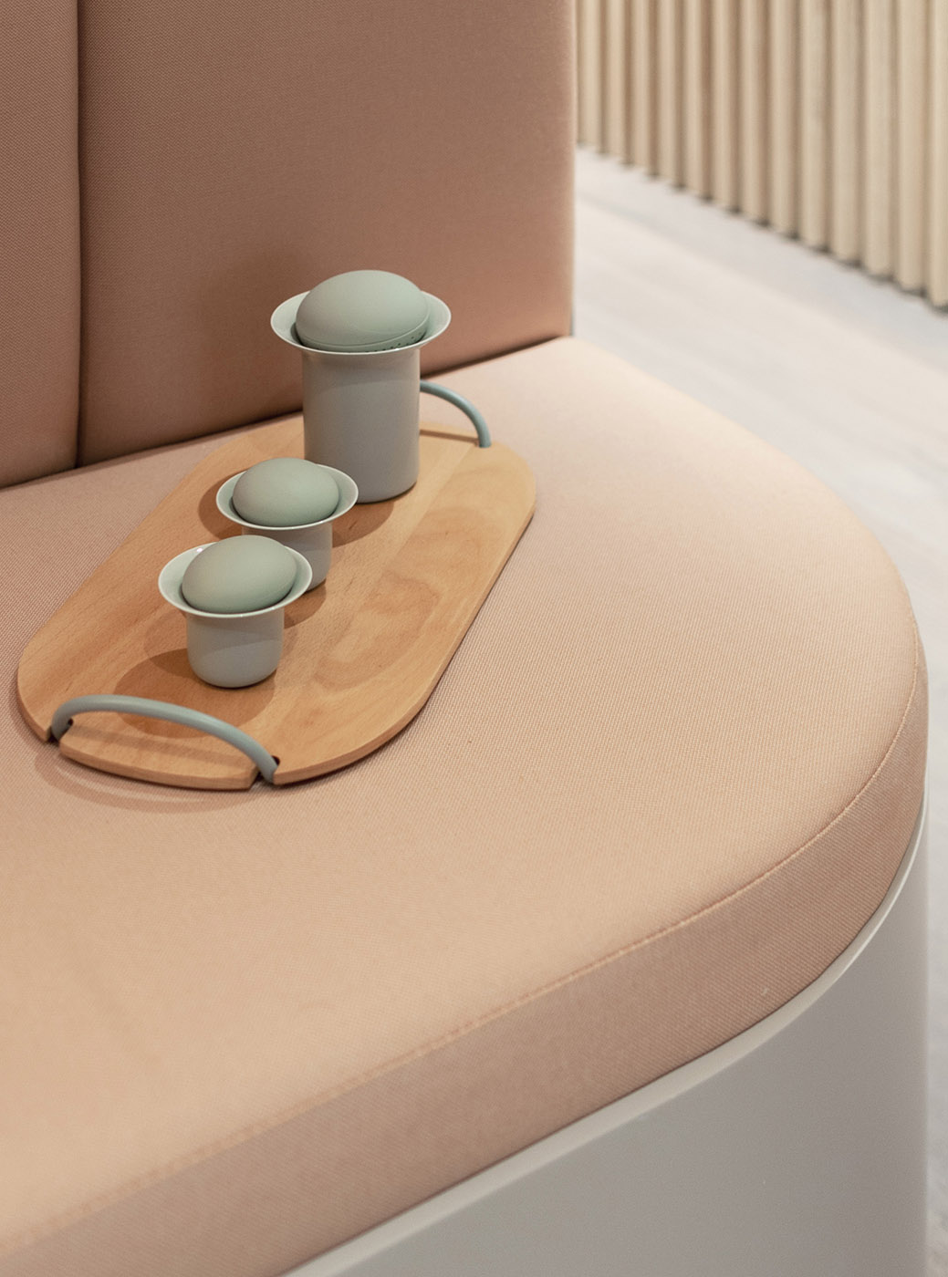 Dando la priorità al benessere degli utenti, le finiture in materiale naturale si affiancano a sistemi di illuminazione con temperatura e intensità di colore che cambiano in base all'ora del giorno, per adattarsi alle esigenze e al corpo dell'utente