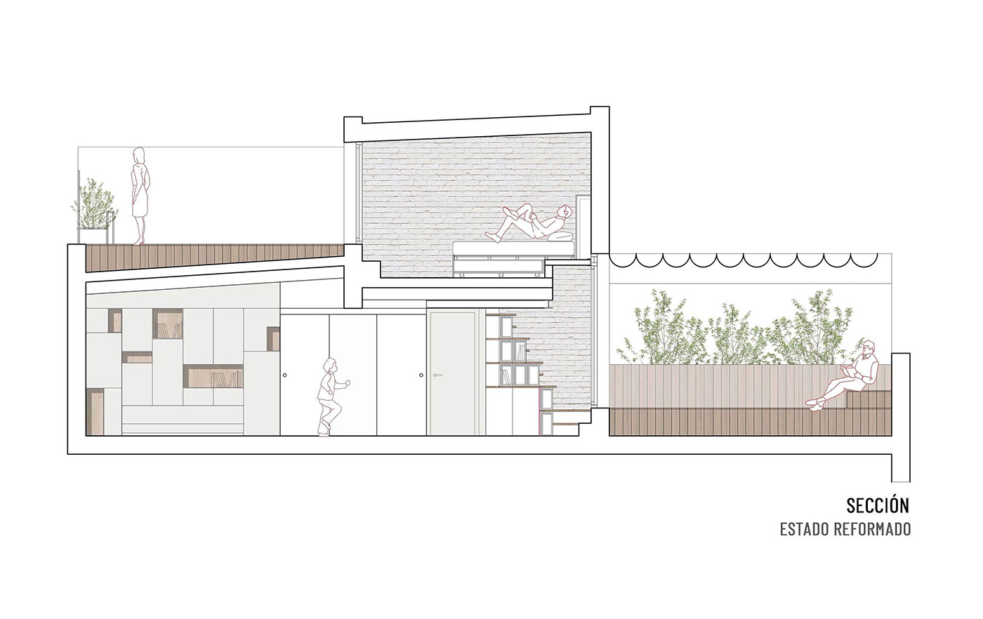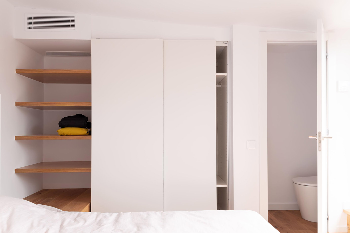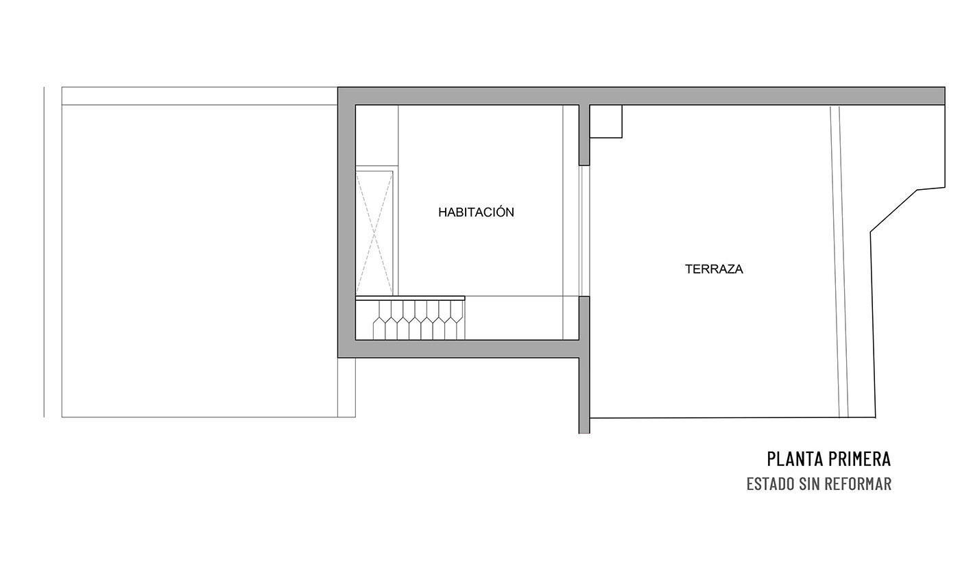Al piano superiore una camera da letto con "pretese" da suite, si affaccia su una terrazza con un orientamento ottimale e contornata di piante. Ad entrambi i piani, grazie alle due grandi terrazze, è possibile godere del buon clima di Barcellona, ampliando la percezione dello spazio interno relativamente esiguo. Quassù il ritmo frenetico della città piena di locali e turisti non è percepito e la ventilazione incrociata porta un comfort insolito nel centro di Barcellona