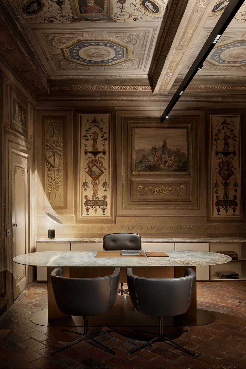 HN è un’azienda toscana che opera nell’ambito della bioedilizia. Commissiona il nuovo HN Headquarter allo STUDIO BLEND che fa di questo intervento uno dei suoi raffinati progetti di interior design. Il ruolo della nuova architettura qui è adattare le esigenze dell’azienda agli spazi interni della sontuosa residenza rinascimentale
