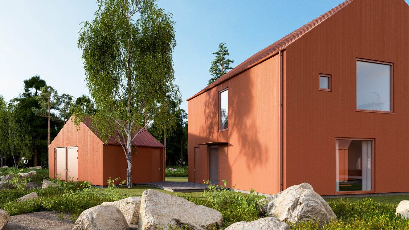 Progetto di 11 ville sparse, situate tra i boschi dell'arcipelago settentrionale svedese, tra pini, muschi e mirtilli, il cui rivestimento in legno dipinto color rosso richiama la tradizione delle case a schiera