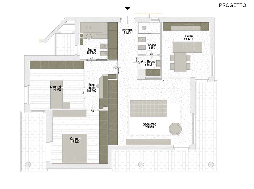 La zona giorno in stile moderno ed elegante