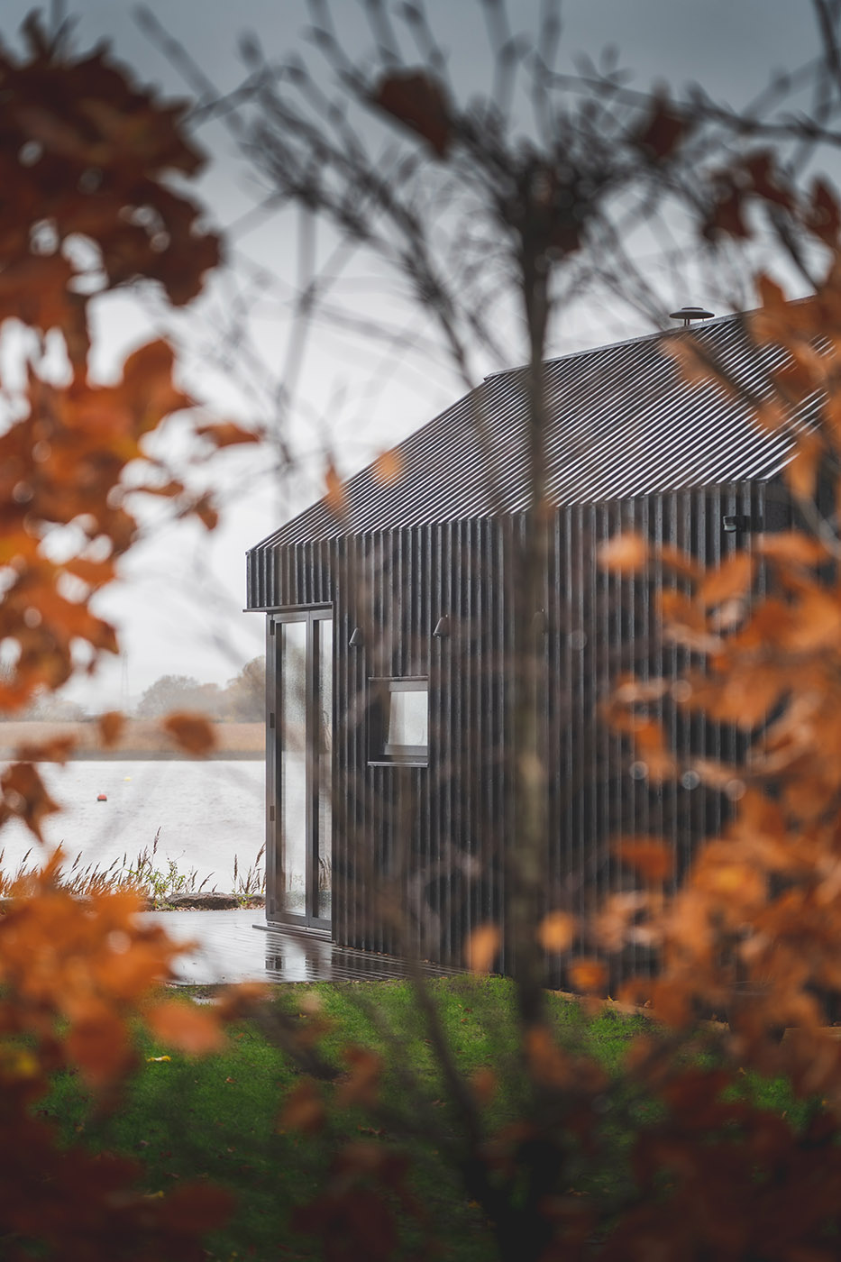Tra i progetti di architettura delle studio Out of the Valley questa rappresenta l'essenza della loro visione di soluzione progettuale sostenibile. La cabina si presenta elegante nella sua semplicità, con la sua forma monolitica che richiama le tradizionali capanne sulle spiaggia. L'esterno dell'abitazione in cedro carbonizzato è una citazione degli scafi neri e bituminosi delle barche che ondeggiano nelle vicinanze.