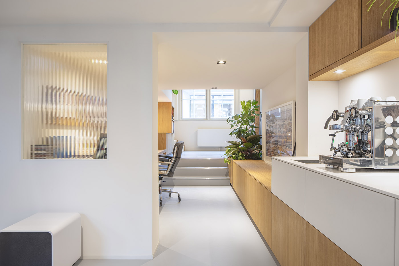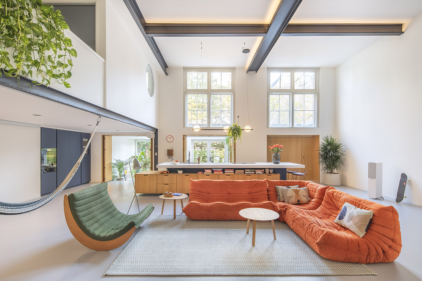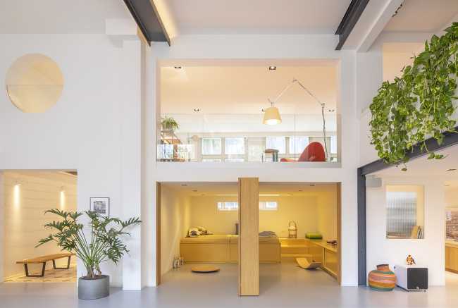 Pareti altissime e grandi spazi aperti inondati di luce naturale, all’interno di una vecchia scuola di danza ormai fatiscente, nel cuore di Amsterdam. Da questa premessa nasce la sfida progettuale: riuscire a dare un’atmosfera domestica calda ed accogliente ad uno spazio così bello ma austero