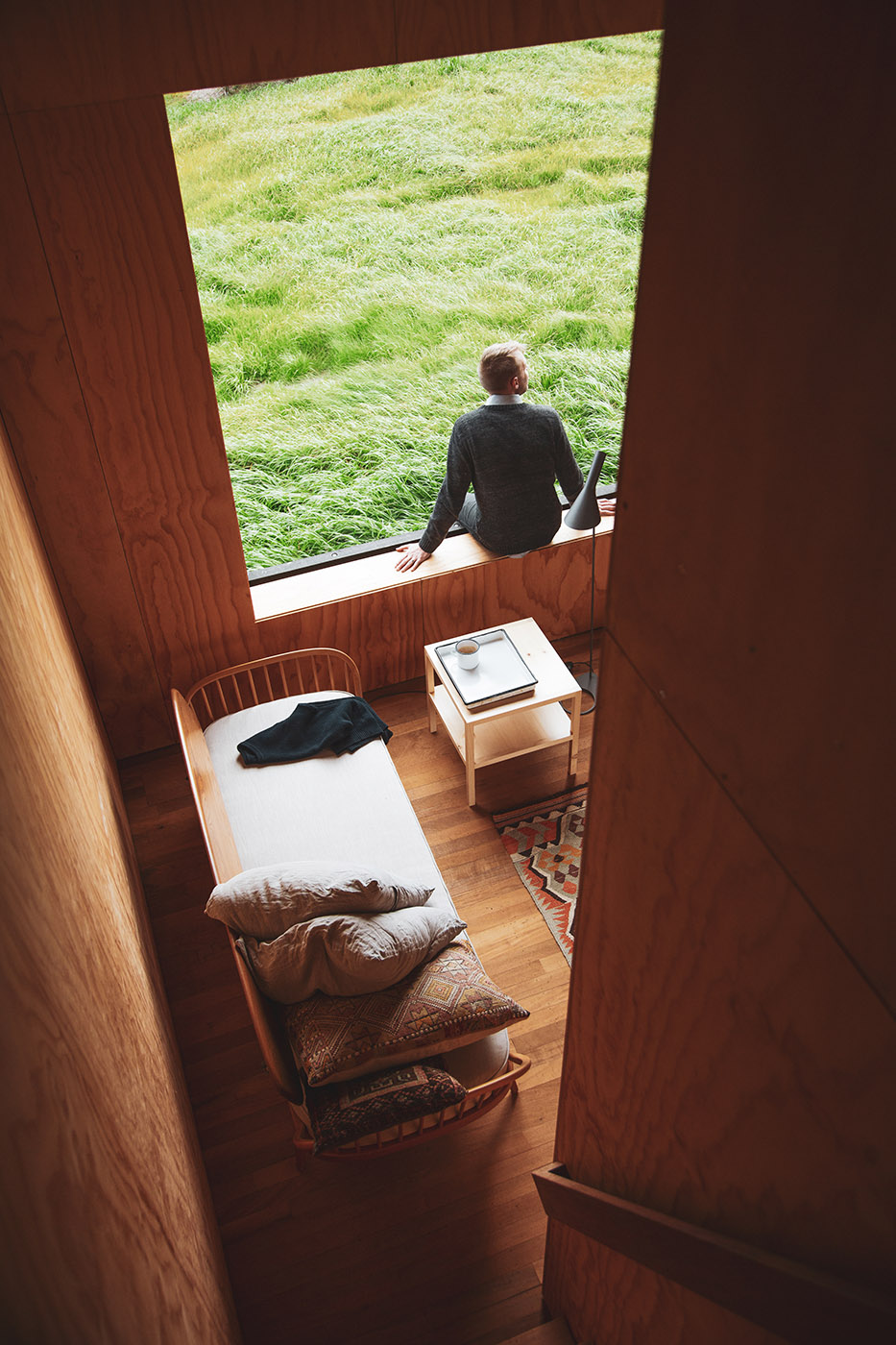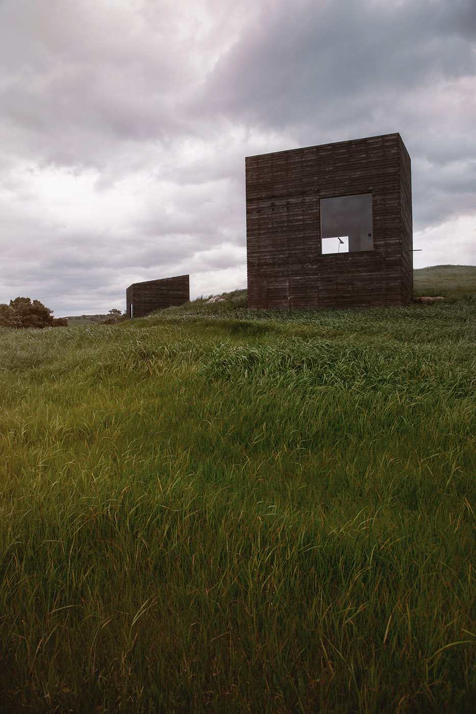 Lo scopo di queste piccole costruzioni in legno è quello di sovvertire il linguaggio architettonico proponendo un qualcosa di diverso. Le cabine non presentano porte, l'ingresso è possibile arrampicandosi sui massi o entrando attraverso le finestre. Un'architettura estremamente poetica, che richiama l'immagine di piccole barche che ondeggiando sul mare