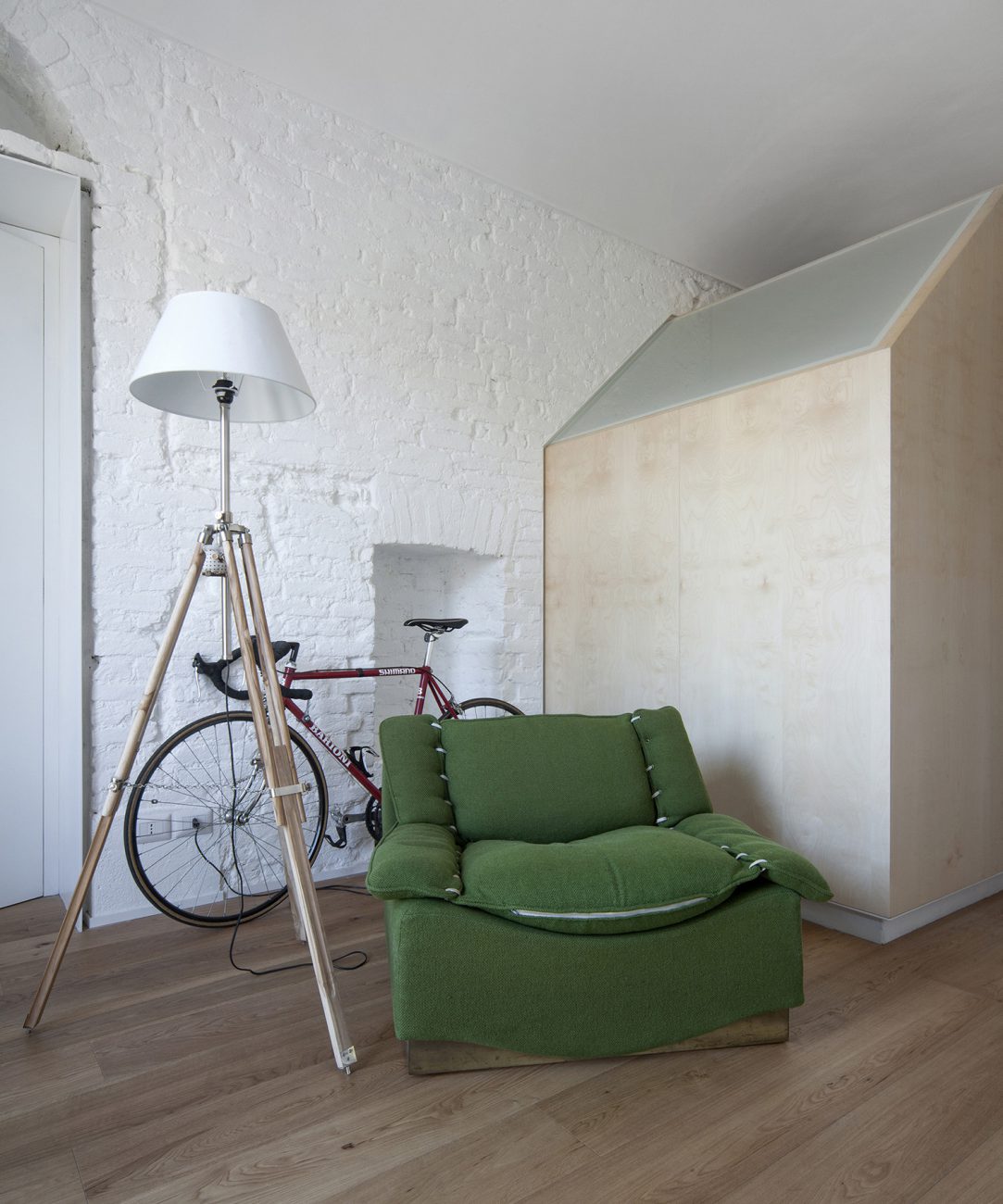 L’elemento ritrovato della parete muraria a mattoni pieni esistente, cui è stato scelto di boiaccare senza applicare lo strato di intonaco, è stato elemento di progetto per le porte interne. Quest’ultime hanno l’intenzione di essere elementi indipendenti, semplicemente inseriti nei varchi esistenti