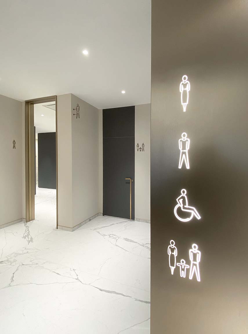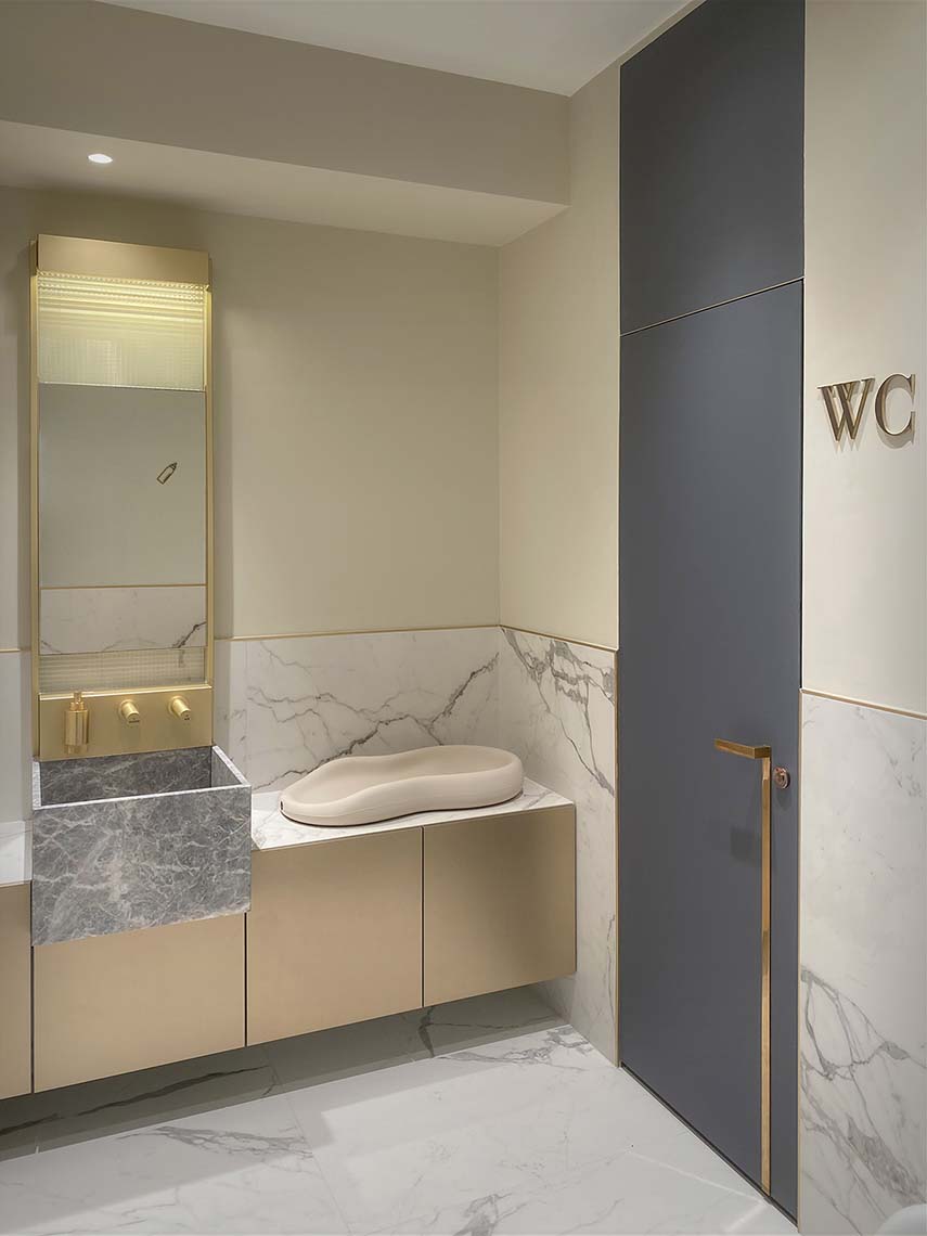 Spazi belli, confortevoli, funzionali e intimi: un design interamente custom, dove materiali e finiture sono accostati grazie a dettagli tecnici ricercati. Un progetto integrato che non dimentica la funzionalità e che intende ridefinire l’immaginario comune di uno spazio di servizio.