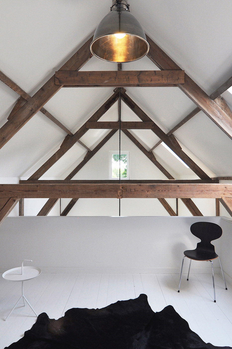 Il vecchio fienile abbandonato, situato tra le dune e il mare, viene trasformato in una spaziosa casa, in cui il guscio tradizionale e le aggiunte contemporanee convivono in armonia. Il volume originale viene rispettato, come anche la struttura portante