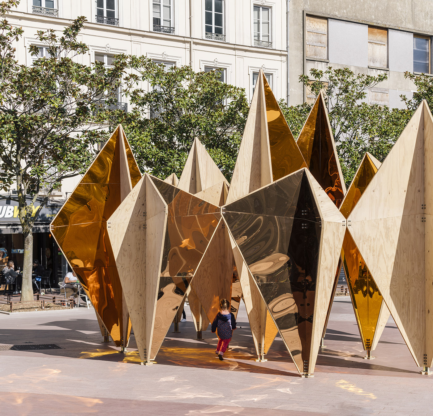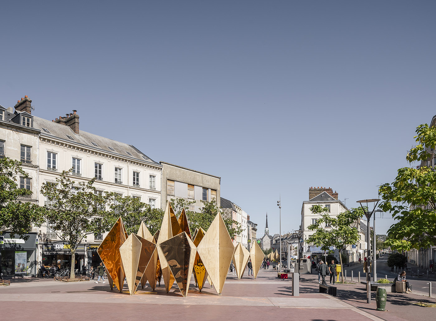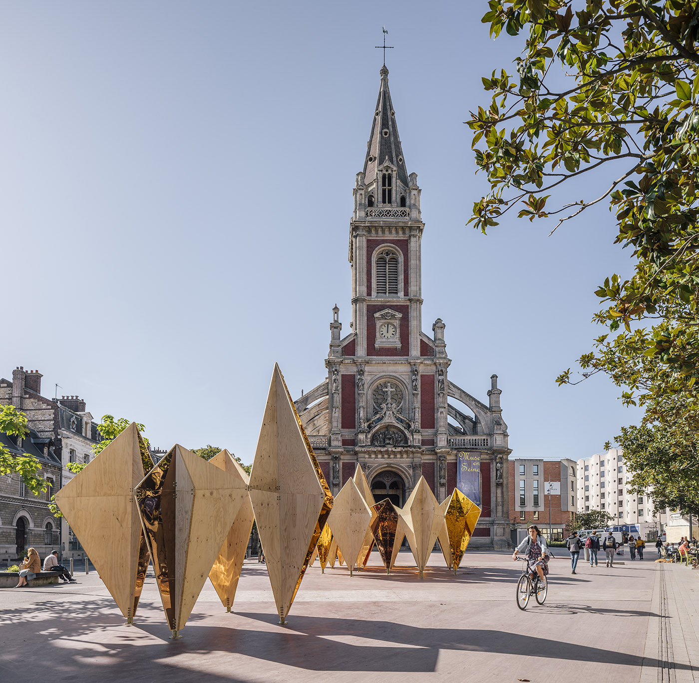 La realizzazione del progetto lo inserisce a pieno titolo tra le istallazioni aristiche all'aperto che sottolineano il contrato e la compenetrazione tra natura e tessuto urbano. Situata davanti alla chiesa di Saint-Sever di Rouen, in Francia, ha come punto di partenza 30 pannelli di pino lamellare che, organizzati con semplici regole geometriche, danno luogo ad uno spazio organico e complesso progettato dallo studio di architettura madrilegno mecanismo.