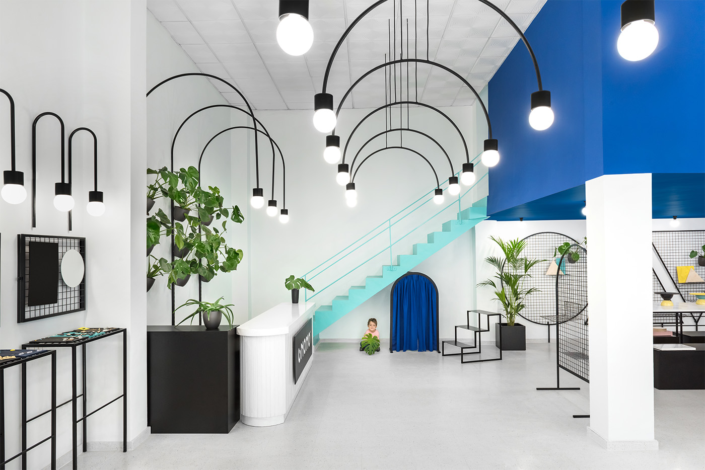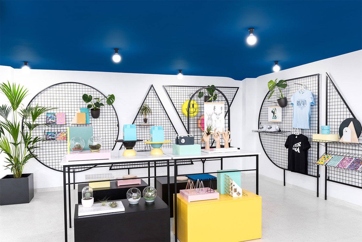 Il progetto rispecchi l’aspetto degli anni ’80 che lo spazio portava con sè, aggiungendone un tocco contemporaneo. Il nuovo pavimento in granito dal colore morbido nè smorza l’effetto, insieme a pareti bianche e un tocco di blu e verde per creare un'atmosfera allegra e divertente per il negozio lifestyle