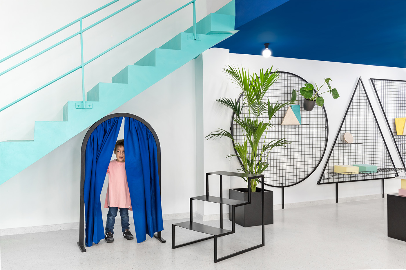 Colori forti e spazio rilassante. Grazie alla perfetta armonia delle geometrie, il blu e il verde regalano una piacevole sensazione di armonia, dove ci si immagina che qualsiasi cosa possa accadere