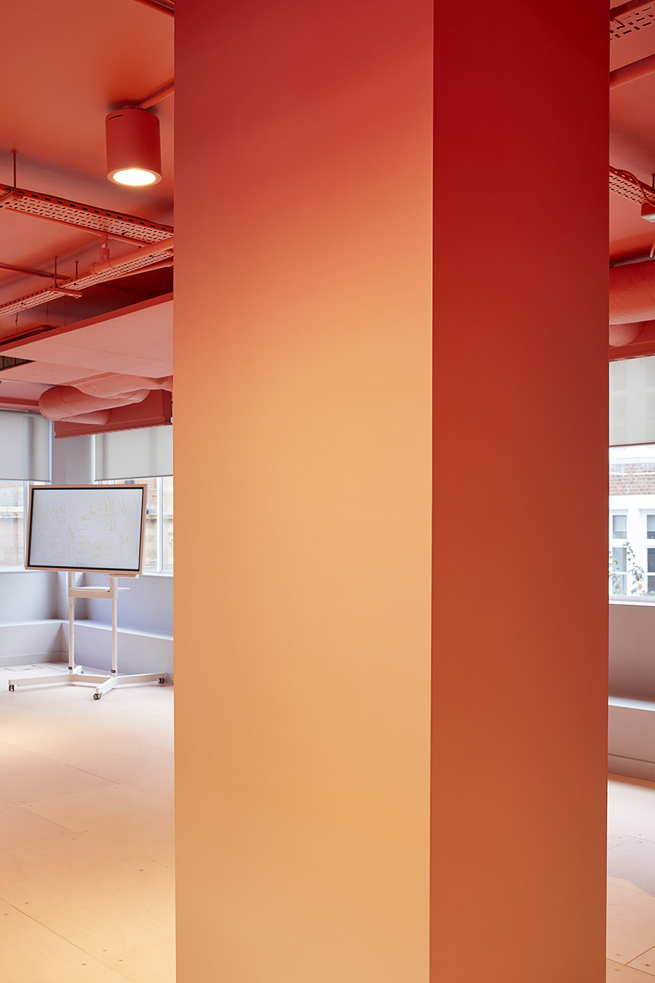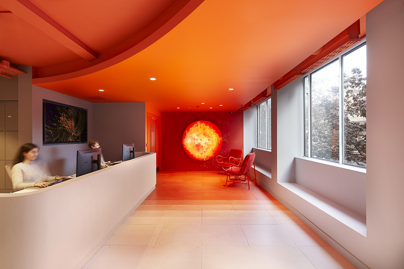 Centro ricerca digitale a Londra. Colori forti per una sensazione di accoglienza e calore