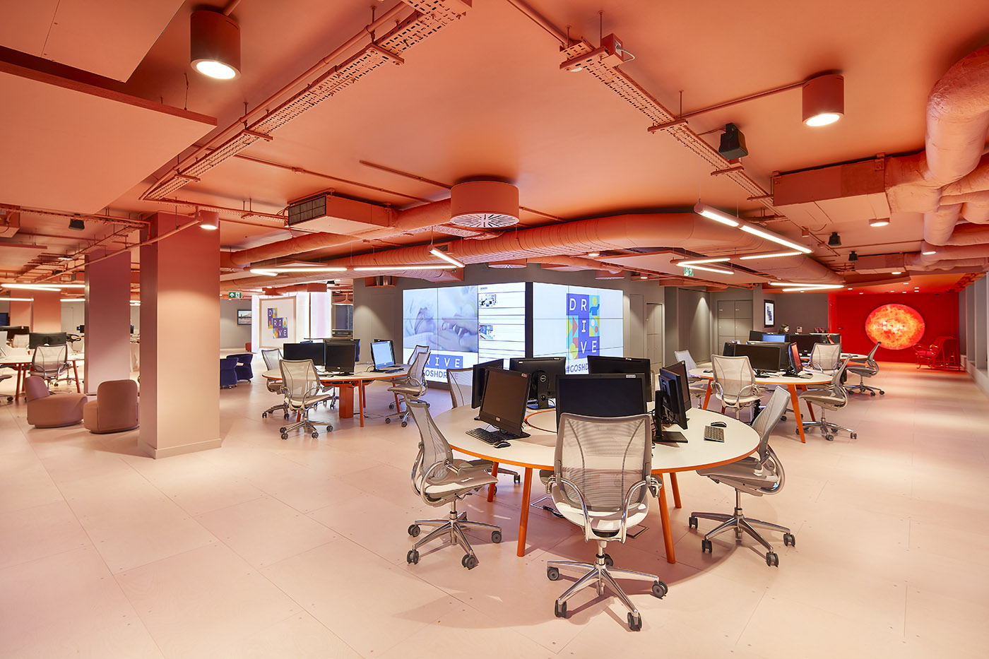 GOSH Drive (Ricerca Digitale, Informatica e Ambienti Virtuali) è una struttura sanitaria di 6.000 mq, un centro di innovazione con sede a Russell Square, Londra. Lo studio ha lavorato a fianco di GOSH e di importanti esperti del settore della tecnologia, intelligenza artificiale e innovazione digitale per sviluppare un centro all'avanguardia con le ultime innovazioni. La robotica sviluppata aiuterà ad accelerare i tempi di recupero per i pazienti, attraverso l’uso di recenti trattamenti e cure per i pazienti