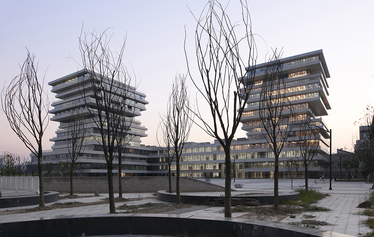 Campus City è un complesso universitario integrato all’università di Hangzhou e si trova a cinque chilometri a ovest dello Xixi Wetland. Qui possiamo trovare una tipica rete fluviale dove quasi novecento anni prima si svolgeva il commercio e il trasporto della seta. La nuova pianificazione del campus consiste nella realizzazione di una dozzina di edifici indipendenti ma completamente aperti che formano un ricco puzzle