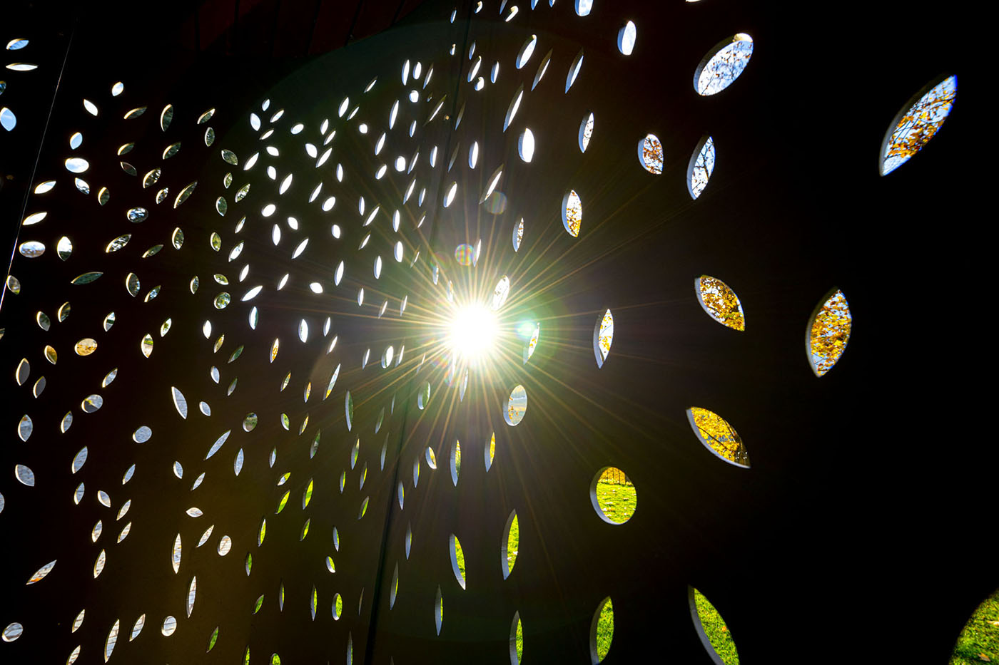 Inizialmente, l'edificio è poco percettibile: la pendenza naturale del terreno ne nasconde l'esistenza, che si avverte solo una volta addentrati nelle sue forme. Un tetto rivestito in tegola si alza dal livello della strada e avvolge la copertura. Il “camuffamento” con il paesaggio viene enfatizzato dal rivestimento in lamiera metallica color terra, lavorato con giochi grafici, e dalle terrazze, lavorate con un design curvo, arricchite con pietre dello stesso colore delle tegole