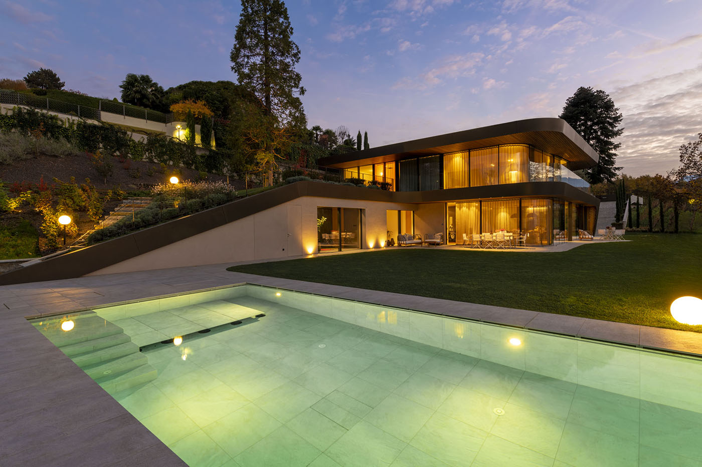 Ampie vetrate, forme curve e materiali in totale armonia con il paesaggio circostante definiscono l'elegante Villa EB, frutto di una complessa ristrutturazione su una villa preesistente risalente agli anni '60 da parte dello studio monovolume architecture + design