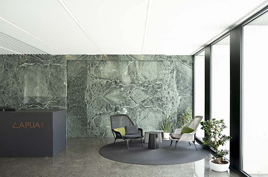 Un ulteriore elemento che accresce il benessere all’interno dei nuovi headquarters di Capua1880 e, addirittura ne fa associare la sensazione di comfort e qualità a quelli tipici dei luoghi dell’abitare, è l’affaccio privilegiato della palazzina uffici verso il verde e la natura. Una piazza, ricavata grazie al riassetto della viabilità e della logistica, posta davanti alla facciata principale comunica direttamente con il patio degli aranci. La trasparenza della palazzina permette una permeabilità unica dell’edificio al suo contesto