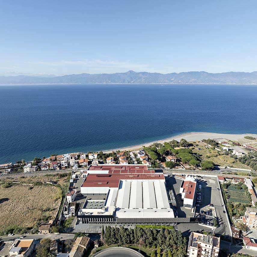 Il nuovo polo produttivo moderno e sostenibile di Capua1880 ha origine dalla trasformazione di uno stabilimento Coca Cola dismesso sulla costa della Calabria nello Stretto di Messina. Una rivoluzione della tradizionale architettura industriale che, oltre a includere efficienza e funzionalità, contempla la trasparenza e la connessione con l’ambiente