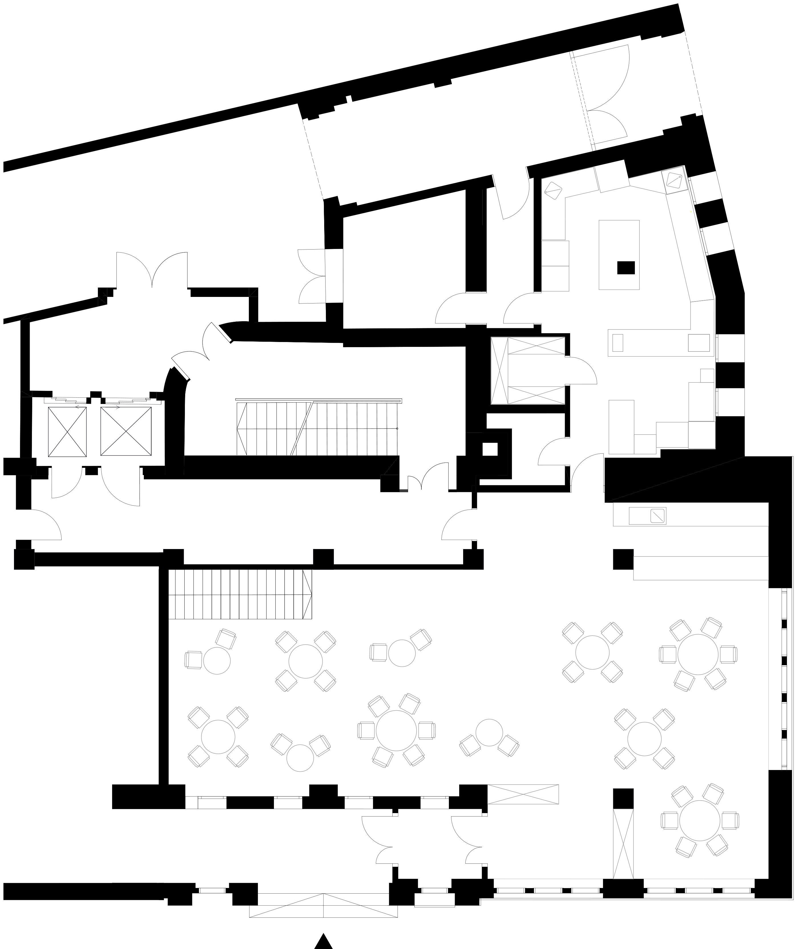 Il pavimento originale in rovere oliato fa da prezioso palcoscenico alle originali scelte di interior design che dipingono la personalità del locale: il bancone bar è rivestito in piastrelle prodotte da Karak in un decoro che nasconde al suo interno il logo del ristorante; i tavoli dalla forma circolare scultorea, realizzati in mdf chiaro, contrastano con le poltroncine rivestite in vellutino verde oliva di Marco Dessi per Wittmann